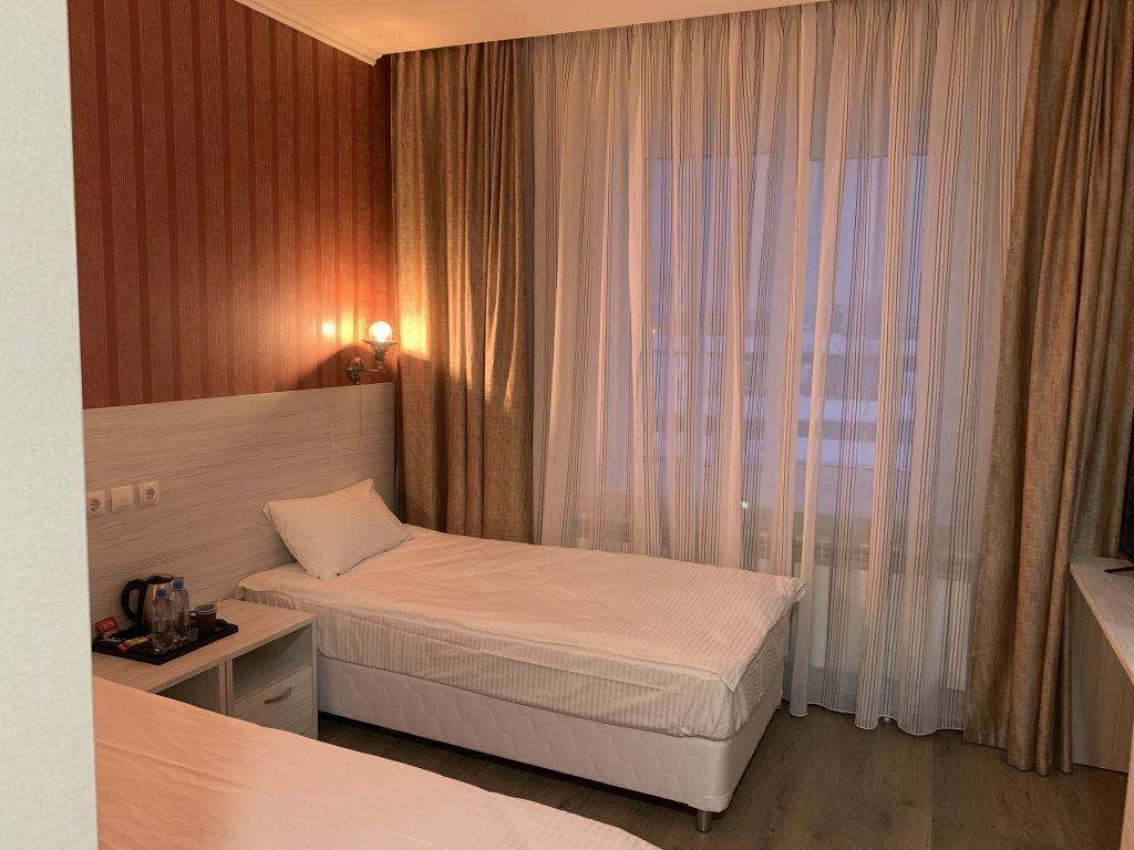 Проживала одна девушка( супруга) в двухместном номере стандарт . Цитирую : Отель новый ,чисто везде. Но персанал грубый ,по телефону не правильно объяснили про стоимость номера и завтраки ,потом при заезде нахамили ,что это мы не правильно поняли ,хотя несколько раз уточнили 7800 это за три ночи с завтраком,получили ответ ‘да ‘ по факту попросили оплатить отдельно 250р за каждый завтрак ,не приятно ….. Сам завтрак вкусный , обслуживание на уровне . Огорчило ,что в отеле абсолютно отсутствует звукоизоляция !!!! Выспаться не получится (((. Фен тоже нужно просить и тогда пренесут ,сами предложить девушке не догодались …,странно …хорошо что я догадалась спросить !!! В городе Орёл бываю часто ,вернусь ли еще в данный отель не знаю,чувства вызвал противоречивые. Плюсы есть и много ,но и минусов достаточно .