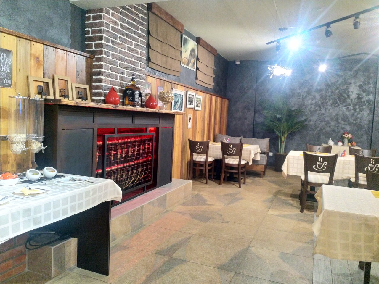 Невероятно тесный номер. Над кроватью даже свет не расположен. Только полу светильник у кровати и лампа на входе, в холле. За стол не сесть. Стул упирается в кровать. Бочком разве только. Завтрак был на ужасном масле, есть перехотелось. Но кофе достойный. Чисто, расположен в центре. Вот и все преимущества.