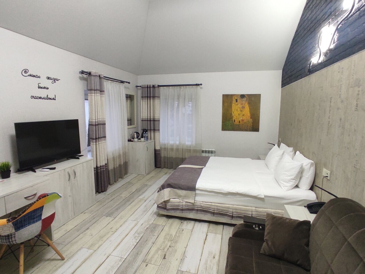 Всё просто СУПЕР. Чисто, уютно, приветливый персонал. Бесплатная парковка во дворе. В номере шикарный дизайн, соответствующий названию отеля . Всем советую, не проезжайте мимо, отдахнете на все 100%., недалеко от трассы.