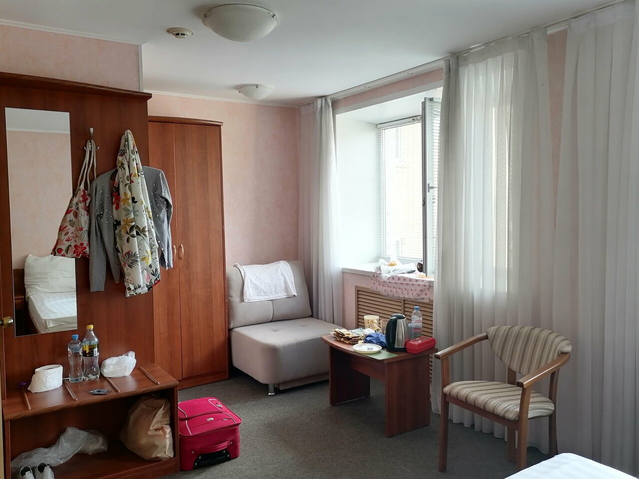 Постсоветская гостиница, с слегка потрёпанным ремонтом. Но для транзитного путешественника самое то. Хорошая звукоизоляция стен помогает отдохнуть и выспаться после дороги, также хорошие завтраки.