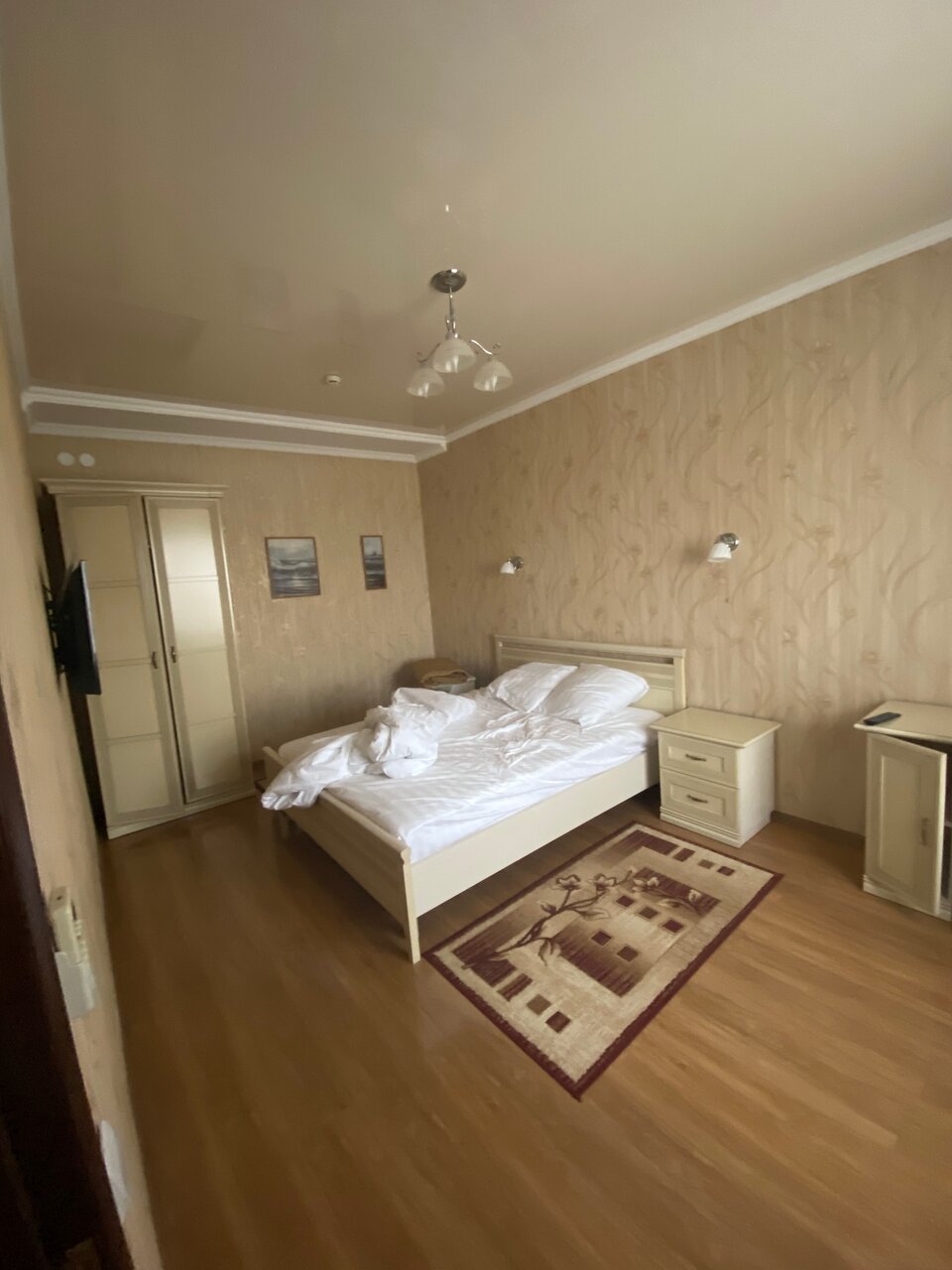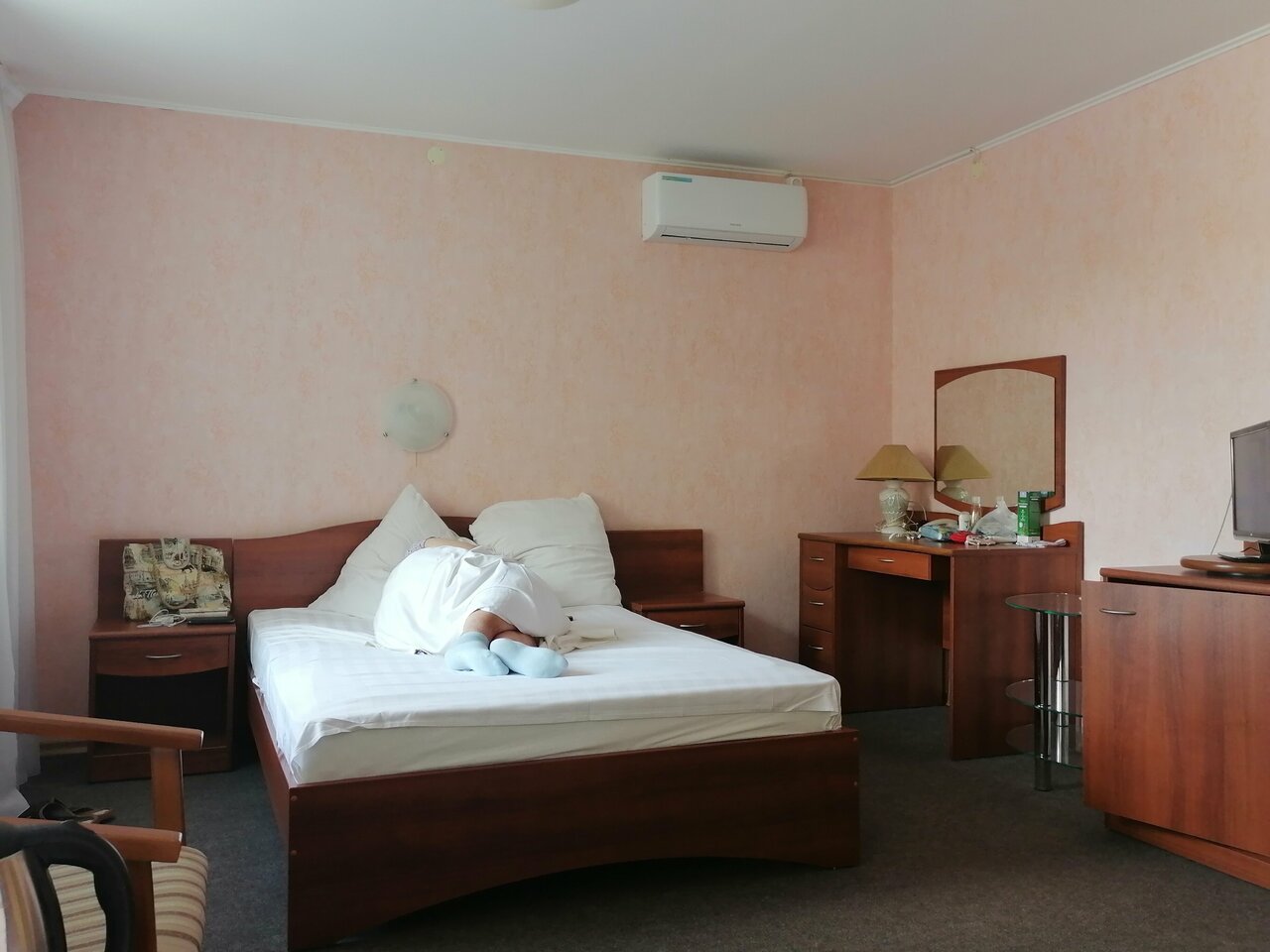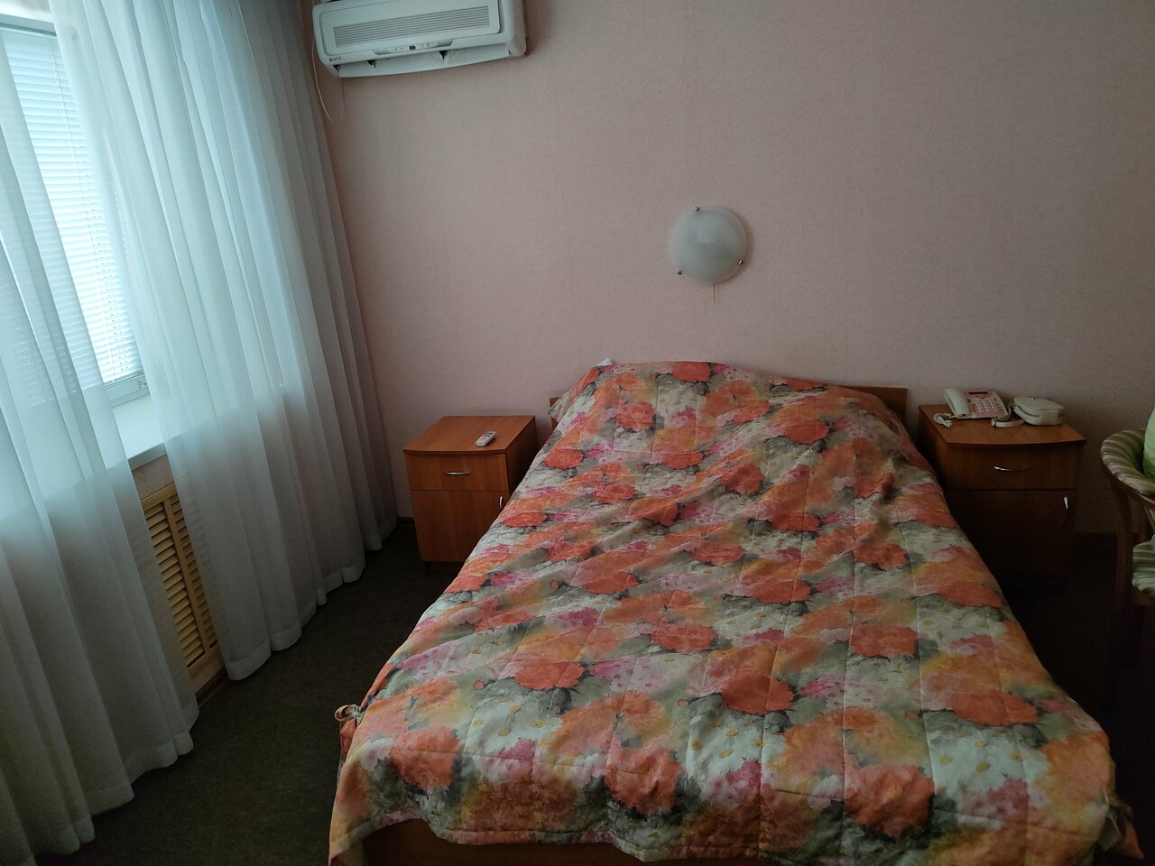 Гостиница — наследие СССР, что меня радует, брал простой номер в командировку по минимуму, шкаф, кровать, рабочий стол и холодильник, телевизор и кондиционер, душевая и туалет, что больше надо. При этом кровать удобная, в меру мягкая, бельё белое, без пятен, возможно даже новое. Питание предоставляет ресторан — кондитерская Миндаль, в этом же здании, всё вкусно, но для рабочего завтрака работают поздновато с 7.30, однако можно с вечера договориться и взять на завтрак большой сэндвич. Персонал радушный, приятный в общении и решении проблемных вопросов в пределах компетенции, не мог выселиться в 12.00 по работе, меня не торопили. Рекомендую для рабочих поездок точно, для отдыха не знаю, попробую — напишу