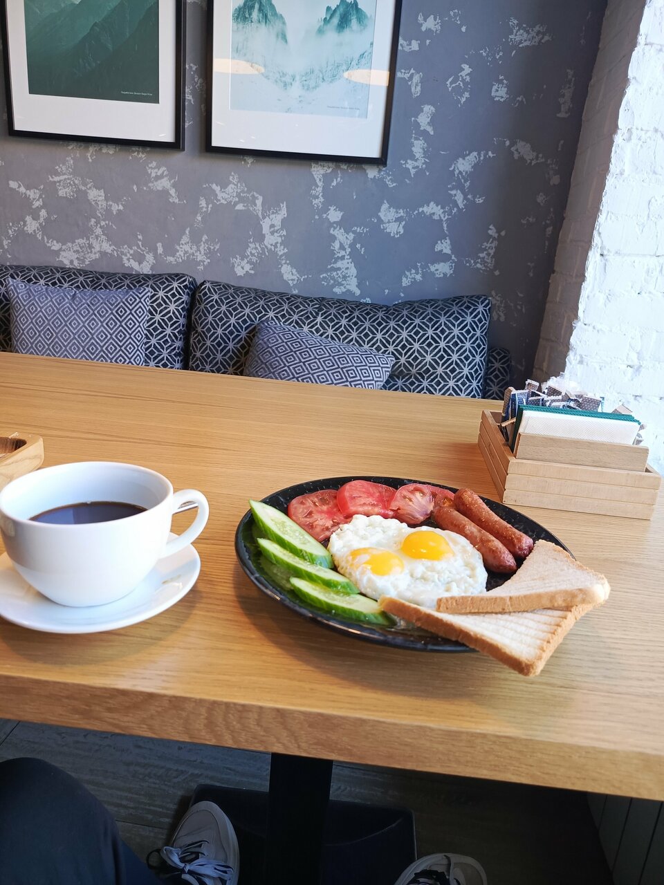 Как к гостинице вопросов, в общем и целом, нет. За такую цену чудес не ожидала. Лифт, да, напомнил лифт из моего детства с грохотом, с видавшими виды кнопками вызова, всё, как положено. Но завтрак — это вообще отдельная тема для обсуждения. Принесли сначала мужу кофе. И без сахара. Ничего, что в общем, кофе является завершающей стадией? Наверное, приготовление яичницы — высший пилотаж поварского искусства, если ожидание было 40 минут!!!! 40!!!! Вы чо шутите!???? Я терпеливо ждала, но пошла поскандалить. А про наш завтрак, как оказалось, просто забыли!!! Официантов много, но каждый из них спящий просто!!!