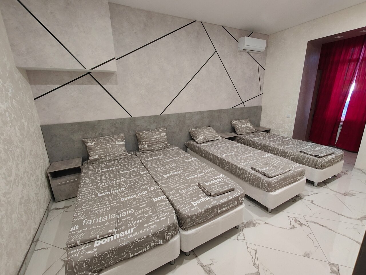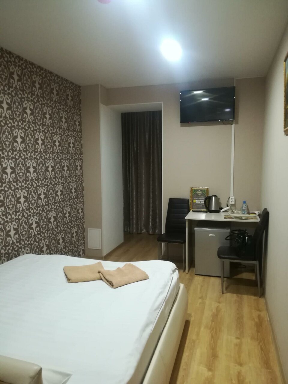 Прекрасный чистый номер с современной отделкой. Приятная администратор. В номере есть холодильник, телевизор, чайник и кондиционер. Хороший сигнал Wi-Fi. Порадовали бесплатной бутылкой воды) За 1800₽ прекрасный вариант для путешественников. Шумоизоляция хорошая, правда загрузка была небольшой. На удивление просторная душевая. По минусам — далековато от центра, нет москитных сеток, местами жëсткие пружины у матраса