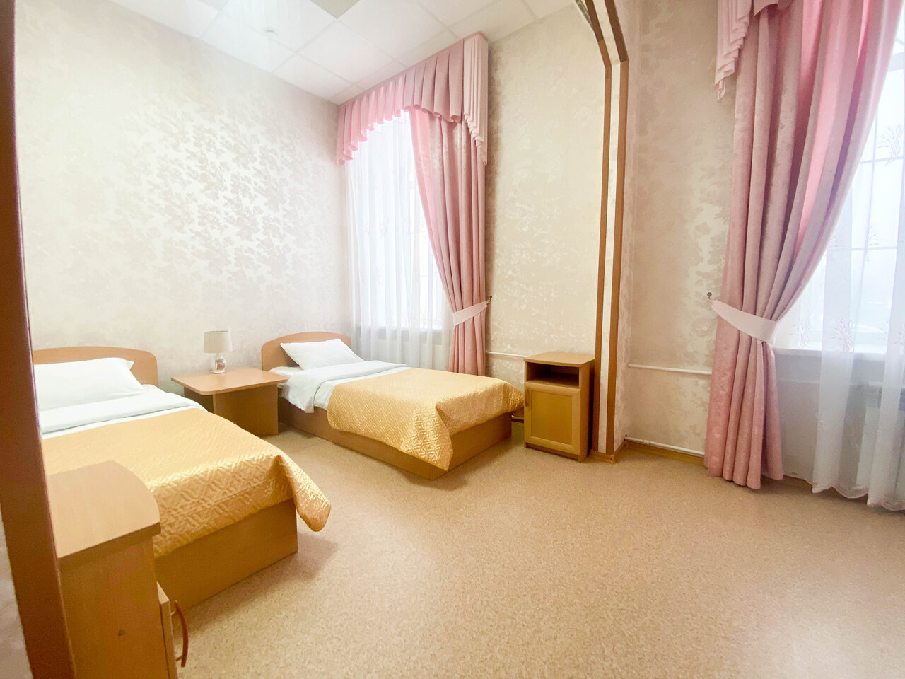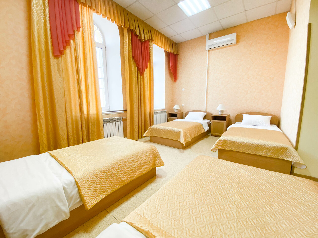 Недорого.Находится в самом центре вокзала.Громадные номера.Душевая кабина отдельно от туалета.Доброжелательный администратор,готовый всегда помочь.Душевых принадлежностей нет.Кровати не убитые.На одну звезду меньше ставлю надо тащить по лестнице на третий этаж чемоданы,постоянный шум от поездов.Удобно для тех кто на поезд опоздал.