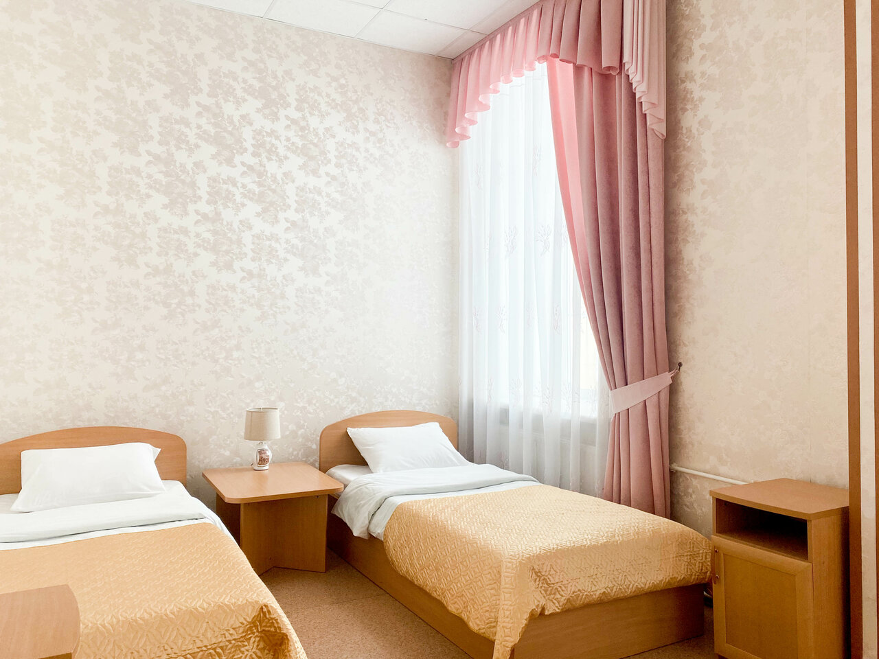 Если вам вообще идти некуда, то вам сюда. ‘Замечательный’ администратор с 1:00 до 2:00 ночи! с маленьким ребёнком! при наличии ваучера с бронированием заранее, не могла нас заселить. Когда свершилось чудо и мы уставшие с дороги зашли в номер нас приветствовал замечательный вид из окна — жд пути со всеми прелестями! Спать было невозможно. Окна большие, из них дует. В номере прохладно. Номер… Постельное белье чистое, пара полетенец (уже не очень белых), чайник, микроволновка, холодильник, телевизор, кондиционер. Фена нет. В ванной только мыло руки помыть, освежитель, бумага. Всё остальное за отдельную плату. Интерьер давно из прошлого. Душевая кабина вся разваливается. Под кроватями грязно… Кроме стаканов ничего нет..