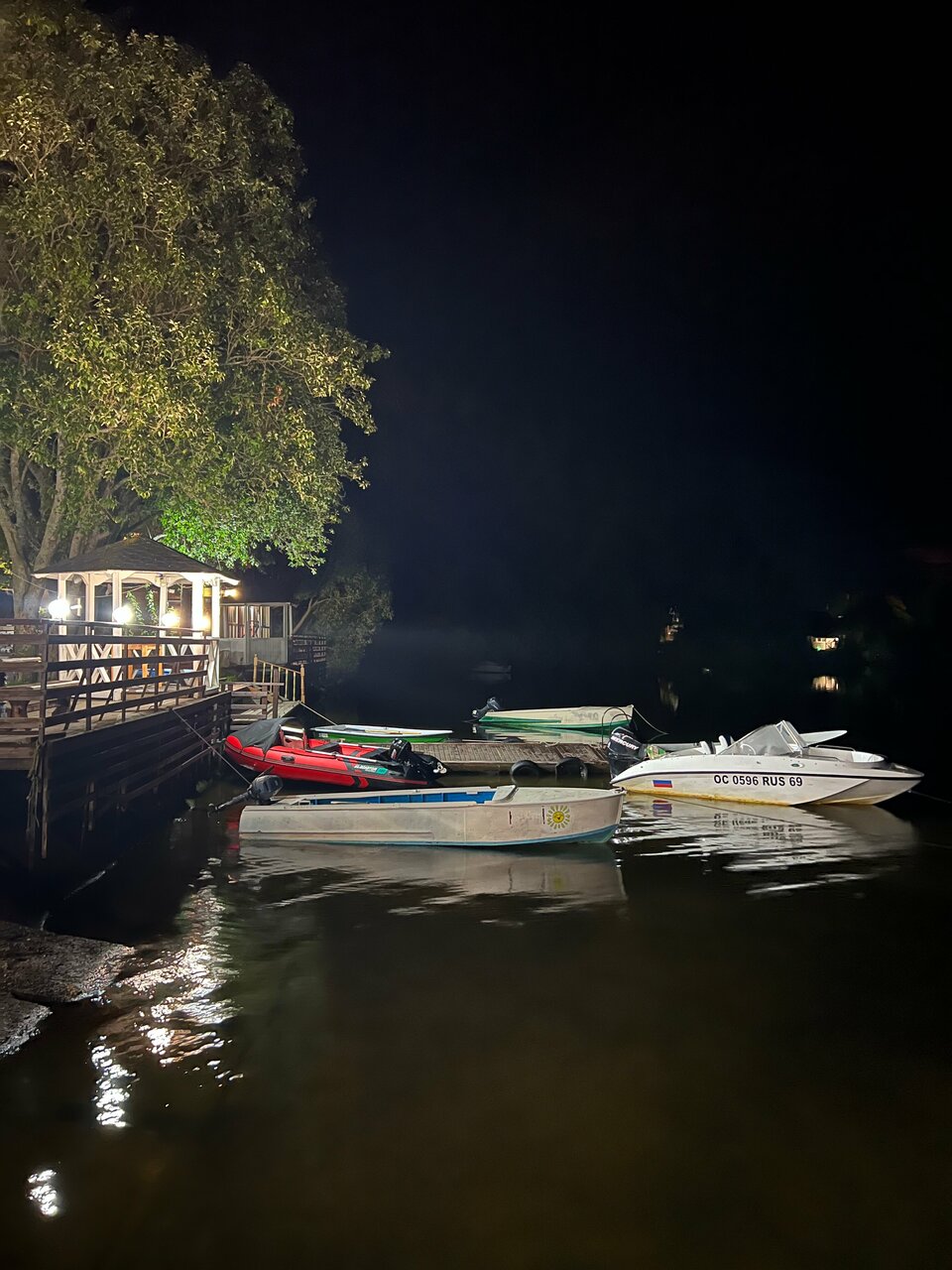 Отдыхали здесь 14-18 июня 2021. Мы занимали бунгало, 8 человек, в нем может поместиться и больше. Большая кухня с посудой,плитой, холодильником ,микроволновкой, кофеваркой, чайником и остальными кухонными принадлежностями. Прекрасный балкон с качелями, беседка , мангал и отдельный спуск в озеро. Туалет и душ на втором этаже в каждой комнате. На первом — один санузел также с душем и туалетом. 4 отдельные комнаты. Очень уютно и чисто. Мы брали моторную лодку, замечательно прошли на ней до Белого озера, Ниловой пустыни. Дети покатались на САПах. Погода была шикарная, купались в озере дважды в день. Большое спасибо хозяевам за гостеприимство!