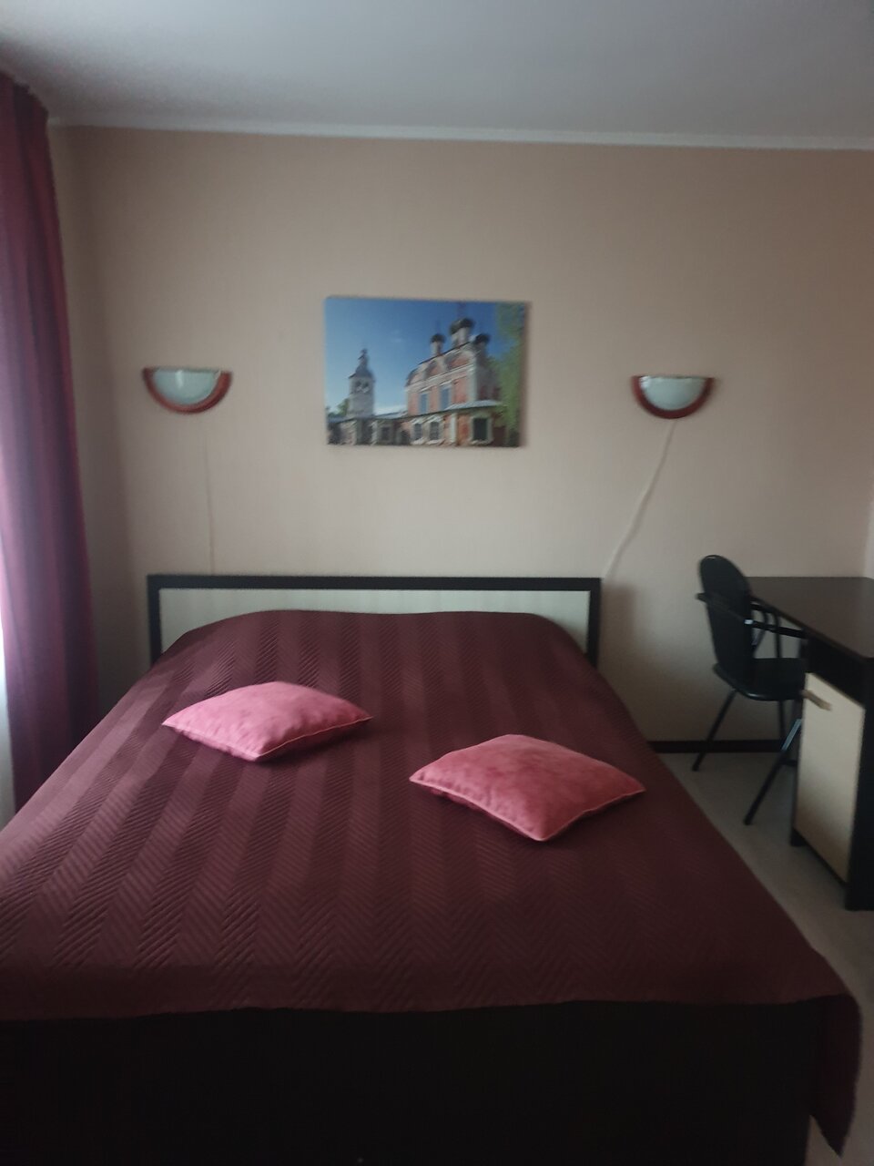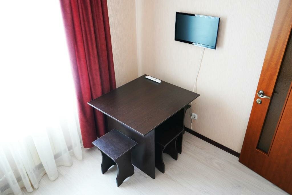 Уютно, чисто, комфортно. 4 из за телевизора — прибит к стене, угол обзора маленький. И с кровати, и от стола плохо видно. Пожелание — сделать поворотный кронштейн