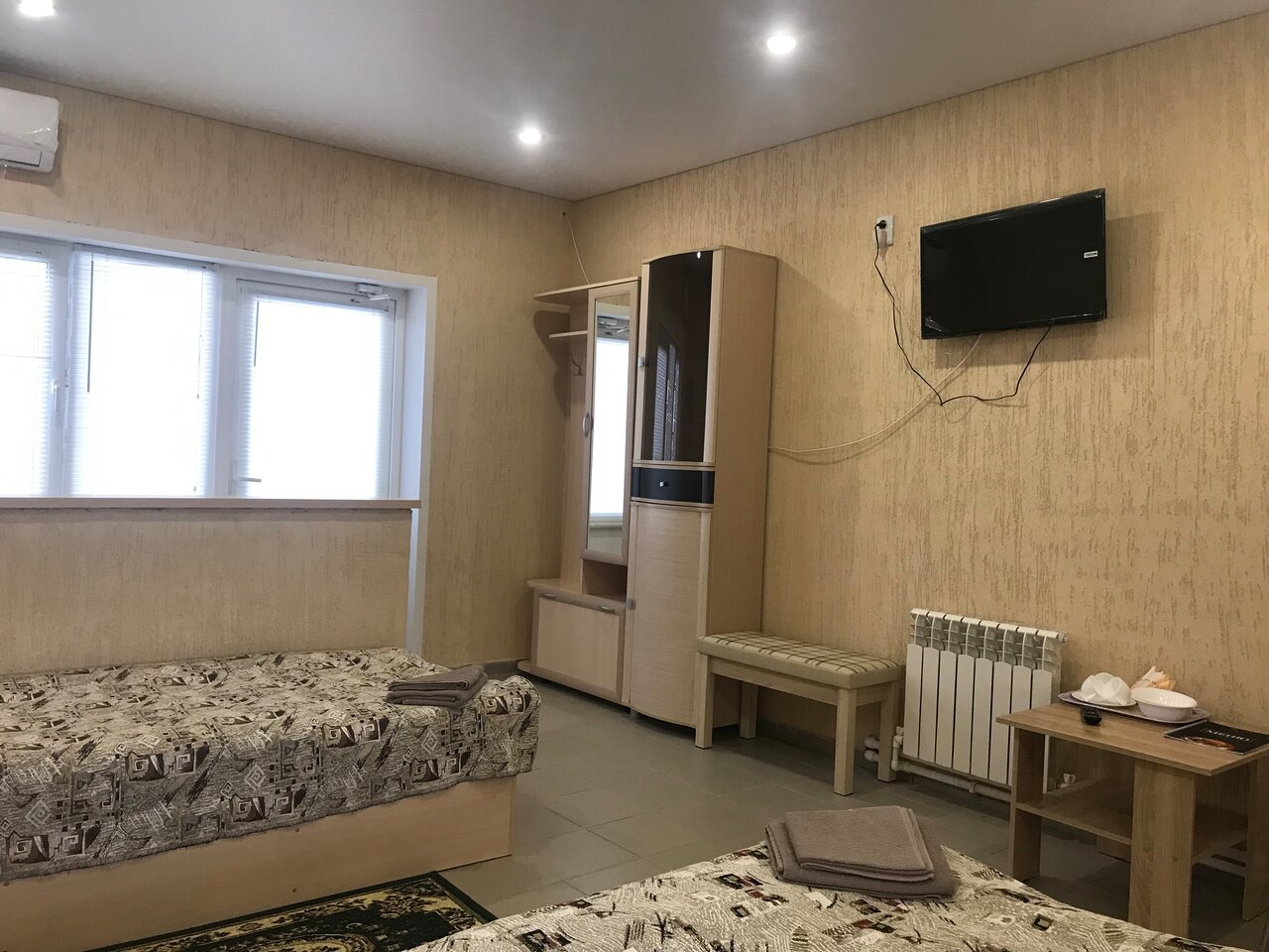 Снаружи неказистое здание в котором работает ответственный, доброжелательный персонал. Большие номера с удобствами. Кондинционер, телевизор, холодильник, чайник, всё в номере. Завтрак принесли в номер. И все это за небольшие деньги. Рекомендую.