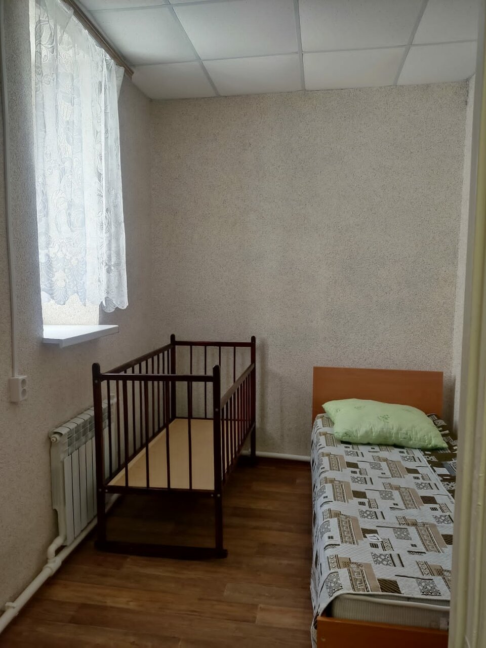 Тихо. Чисто. Скромно. В комнате шкаф, кровать, стол, туалет и рукомойник. В общей комнате весь набор для приготовления быстрого перекуса. И есть вай-фай.