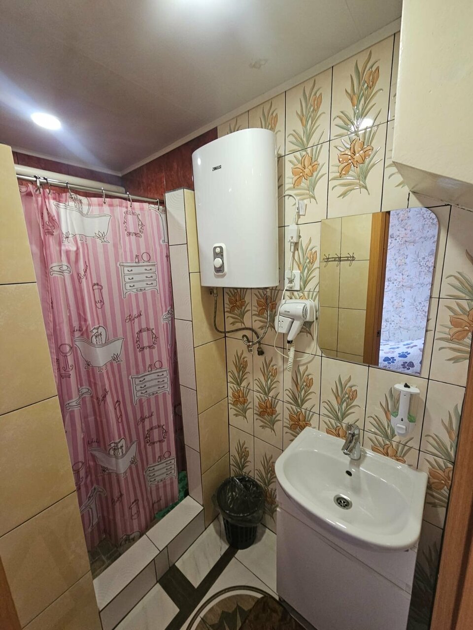 Выбрали это место не только из-за удобного месторасположения. Это милая скромная гостиница. Встретили как своих близких — душевно. Номера чистые, постельное белье белоснежное, удобные подушки. Мы (2-е взрослых и двое детей) снимали двухкомнатный номер. В номере есть и душевая и отдельно санузел с раковиной. Порадовал большой холодильник и чайник с чашками в номере. От жары спасал вентилятор. На этаже кулер с водой, микроволновка, гладильная доска с утюгом. В номере и в коридоре на стенах репродукции и картины, много цветов.