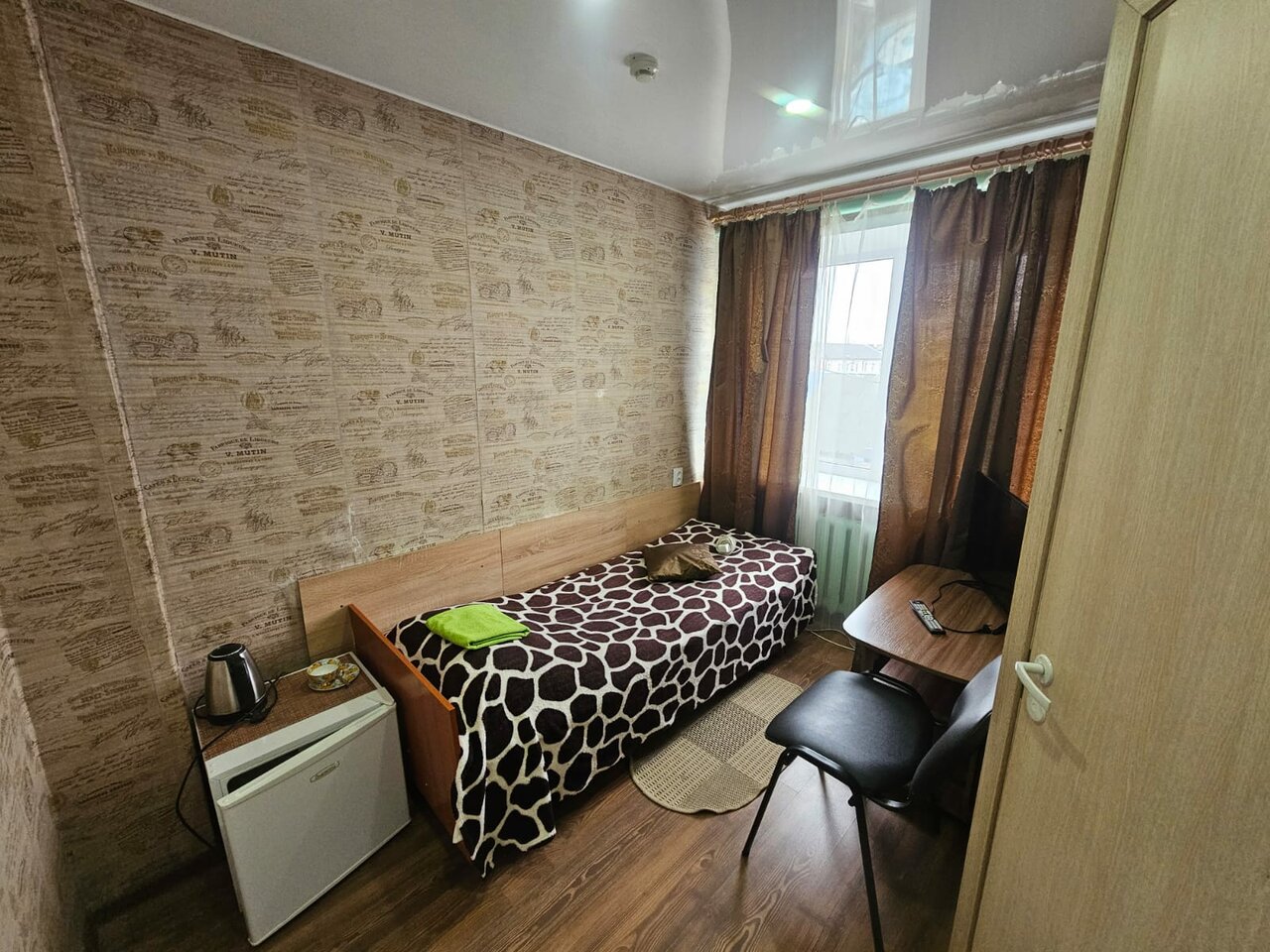 Гостиница в центре города. Условия как и в большинстве провинциальных городов. Номера на третьем этаже, без удобств. Душ, туалет и умывальник общие. Есть детский уголок и кулер. Но именно эту гостиницу выгодно отличает от других персонал. Очень душевное отношение. Поэтому и высокая оценка.