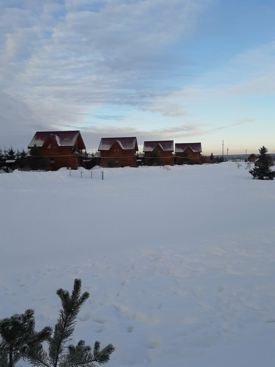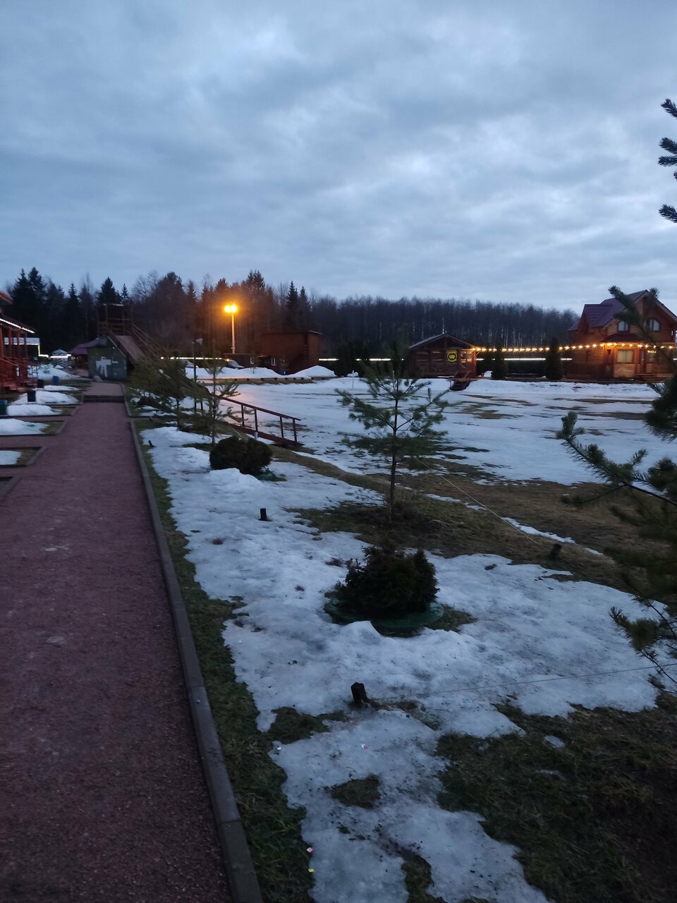 Были там на масленицу, вроде как бы все есть и каток, и кафе, и домики, и горка для детей, но все какое-то не докалыханное . Ремонт в домиках мягко говоря требует обновления, лед на катке никто не готовит и не чистит, на горке контроля нет, когда было представление катающиеся постоянно врезались в тех, кто водит хоровод. Кафе это примерно как вся база, вроде претендует на пафос, но меню в файликах)) Может показаться, что я просто придираюсь, вероятно я бы не был столь впечатлительным если бы не грубость и не воспитанность женщины с губами на ресепшен, если бы не она, то это три с плюсом или четыре с минусом кому как удобнее