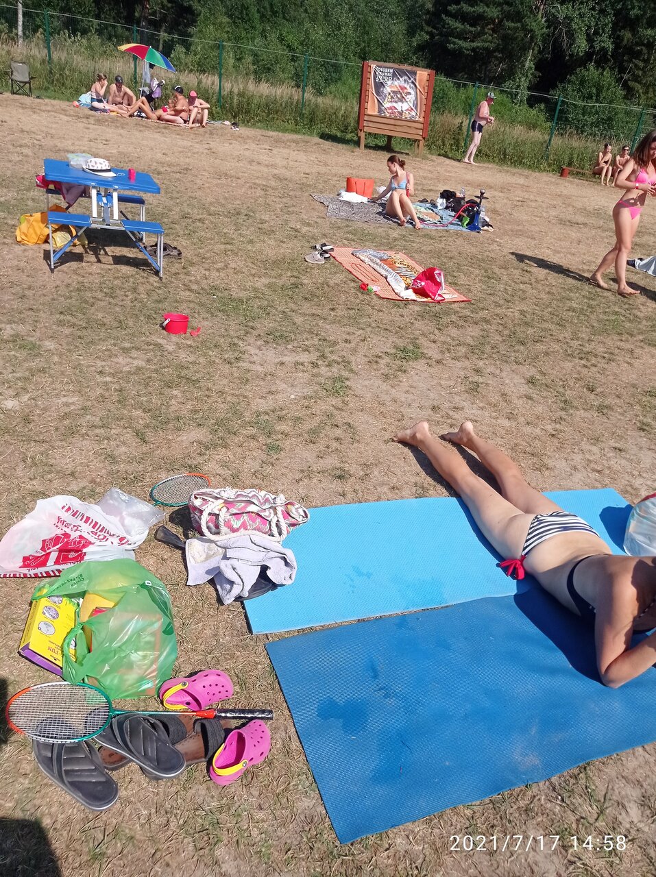 За неимением лучшего рядом, рекомендую. Открытое пространство без деревьев и тени, лес в отдалении за забором, вход двести р на взрослого, дети бесплатно, детская площадка, футбольное и волейбольное поле.