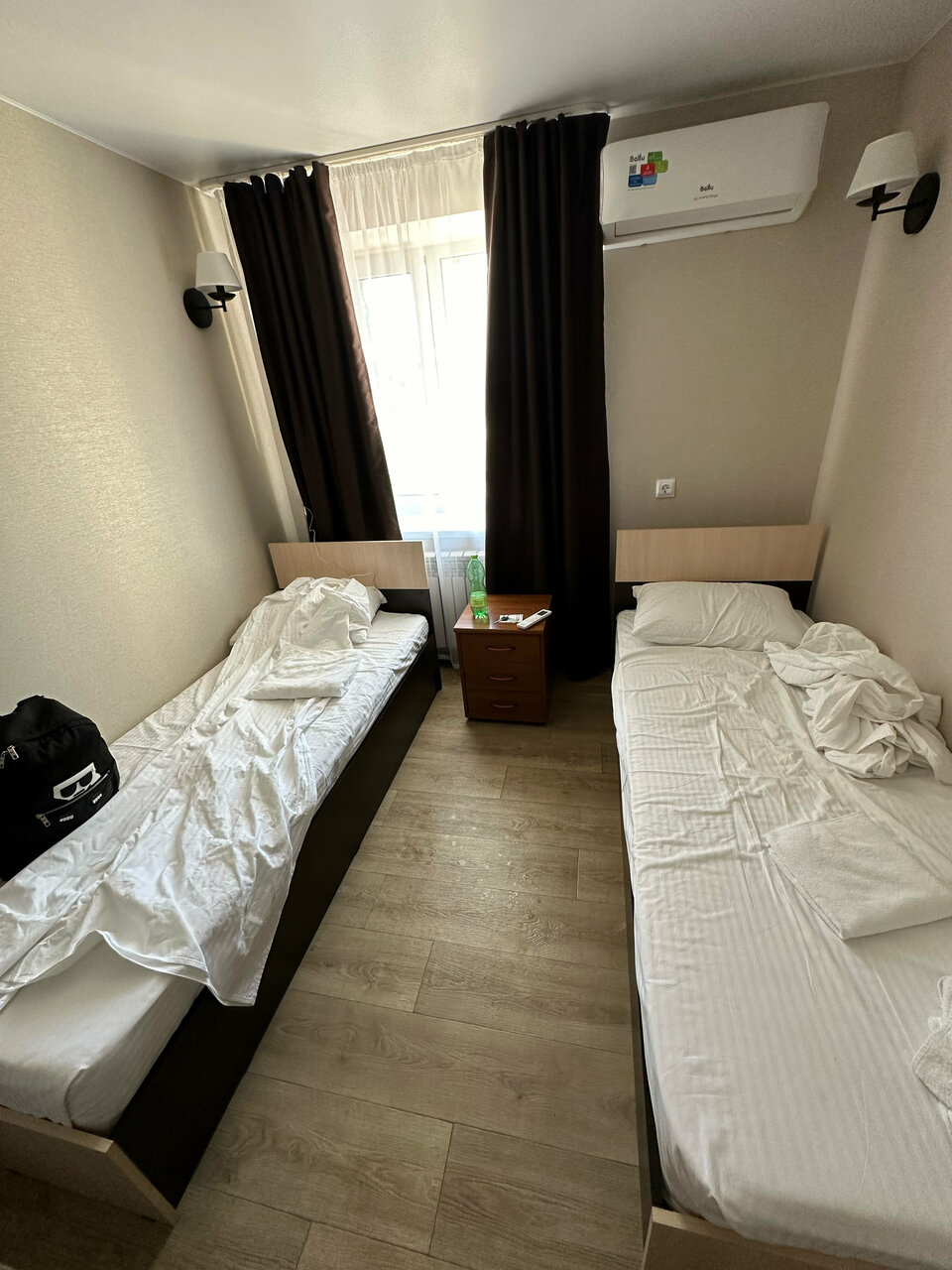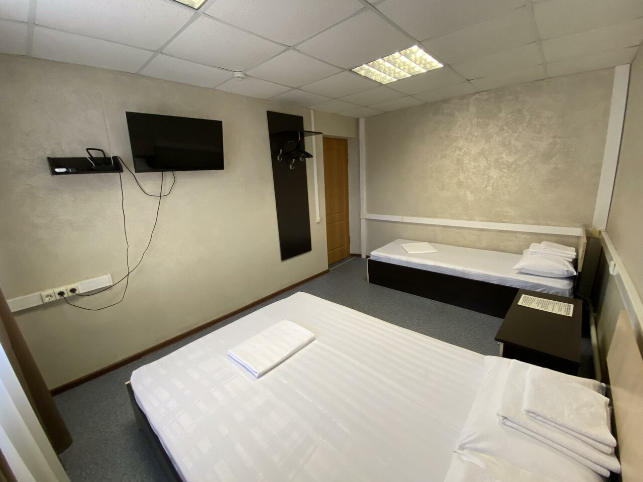 Трехместный номер стандарт площадью 13 кв.м с видом во дворПодходит для размещения 3 человек (3 основных места )Имеет спальню с приятным интерьером.В номере: 3 односпальные кровати.Имеется кондиционер, вешалка.Общая ванная комната.