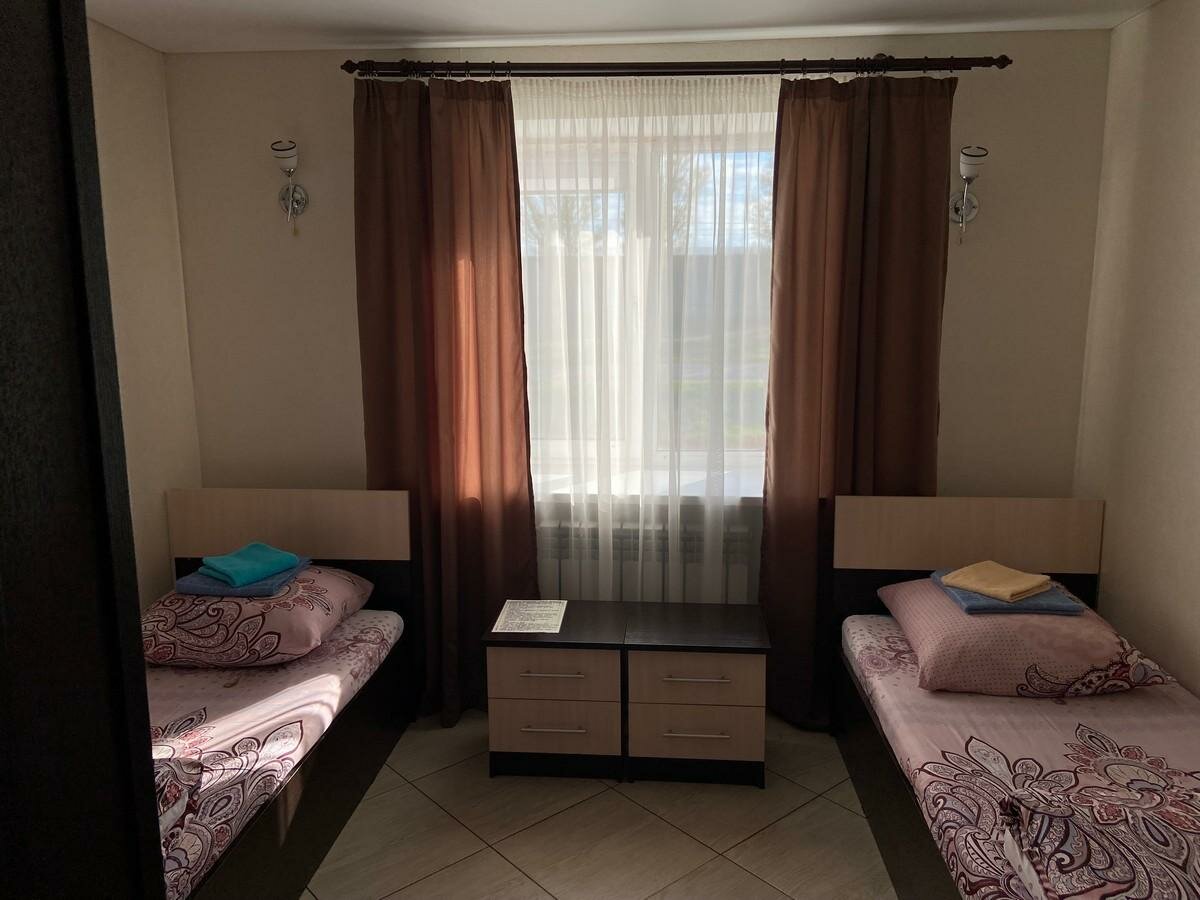Гостиница очень удобная, находится немного вдали от трассы,что даёт отдохнуть от шума машин. Номера чистые, из минусов это только что сан узел и душ за откатной дверью из коридора, которая в любой момент может открытая из за входящих клиентов. Но в целом цена вопроса двух местных номеров 1500 руб и это радует.