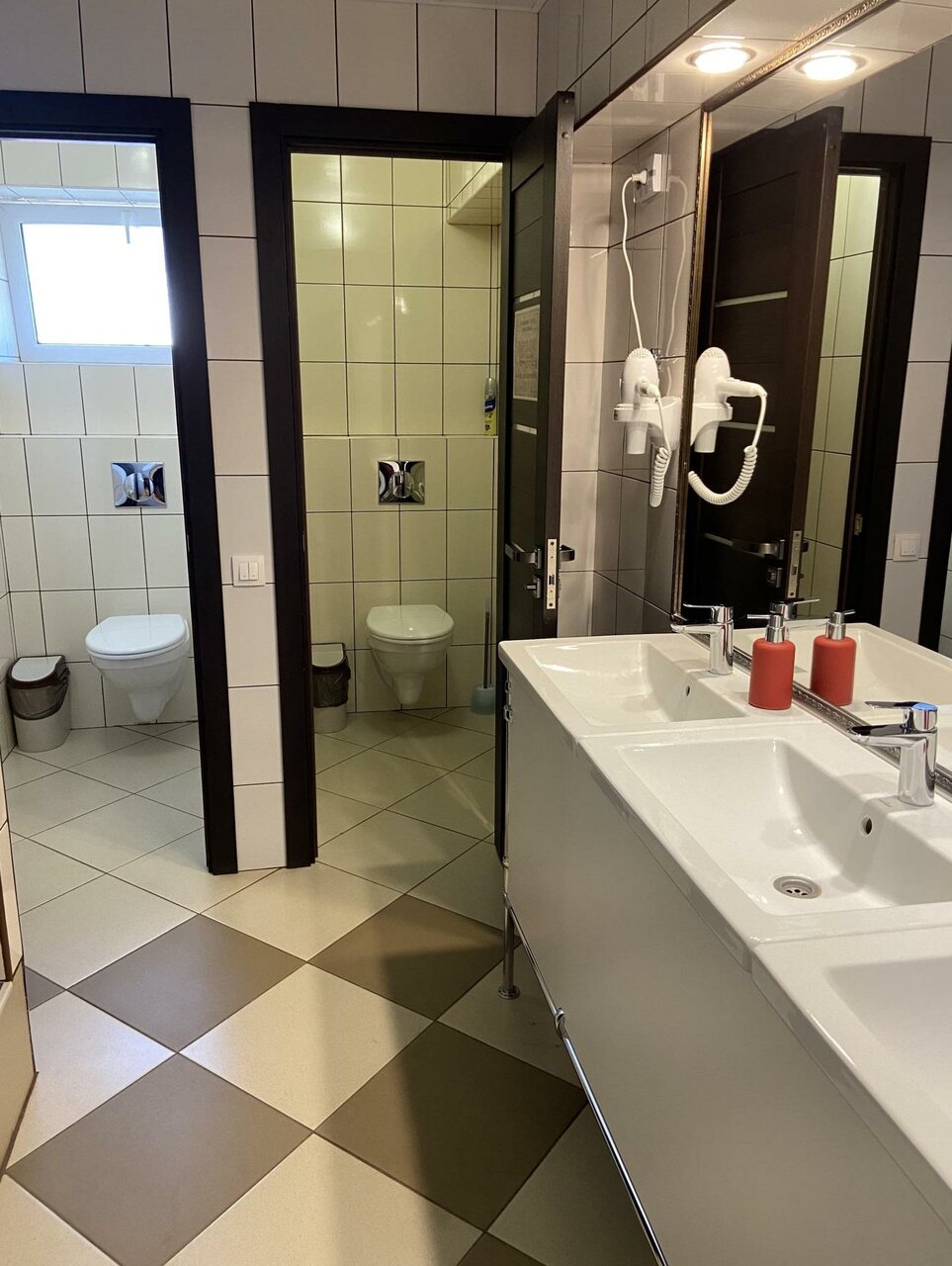 Останавливались на одну ночь, брали двухместный номер(без удобств), туалет и душ общие. Всё чисто и уютно, в комнате два полотенца на каждого, в туалетной комнате есть всё необходимое. Очень хороший бюджетный вариант. Персонал вежливый. Рекомендую.