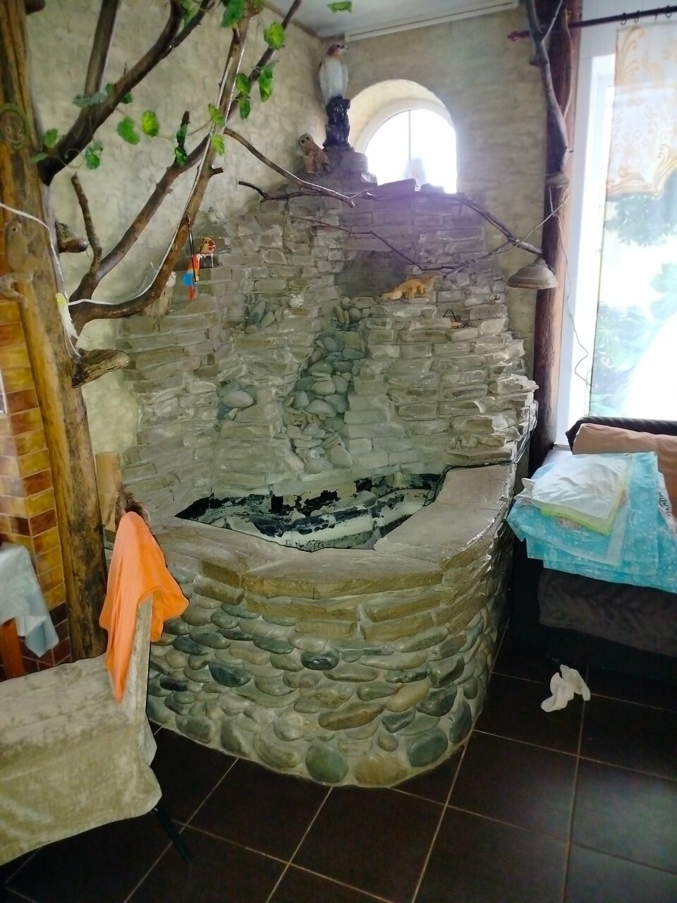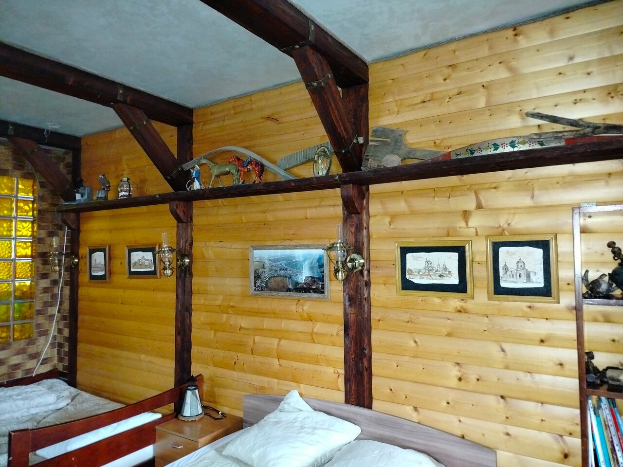 Очень интересный гостевой дом. Хозяин дома очень интеллигентный человек. Кратко рассказал историю города. Провел экскурсию по номеру, в котором очень много интересных предметов старины. Как будто-то оказались в музее. Домик расположен вдали от трассы. Машин не слышно. Зато очень слышно лай собак. Этот лай разбудил нас посреди ночи. Наш номер был в домике с сауной и бассейном. Бассейн был пустой, а про пользование сауной нужно было говорить заранее. Посетителей много, но нам на территории ни кто не встречался.