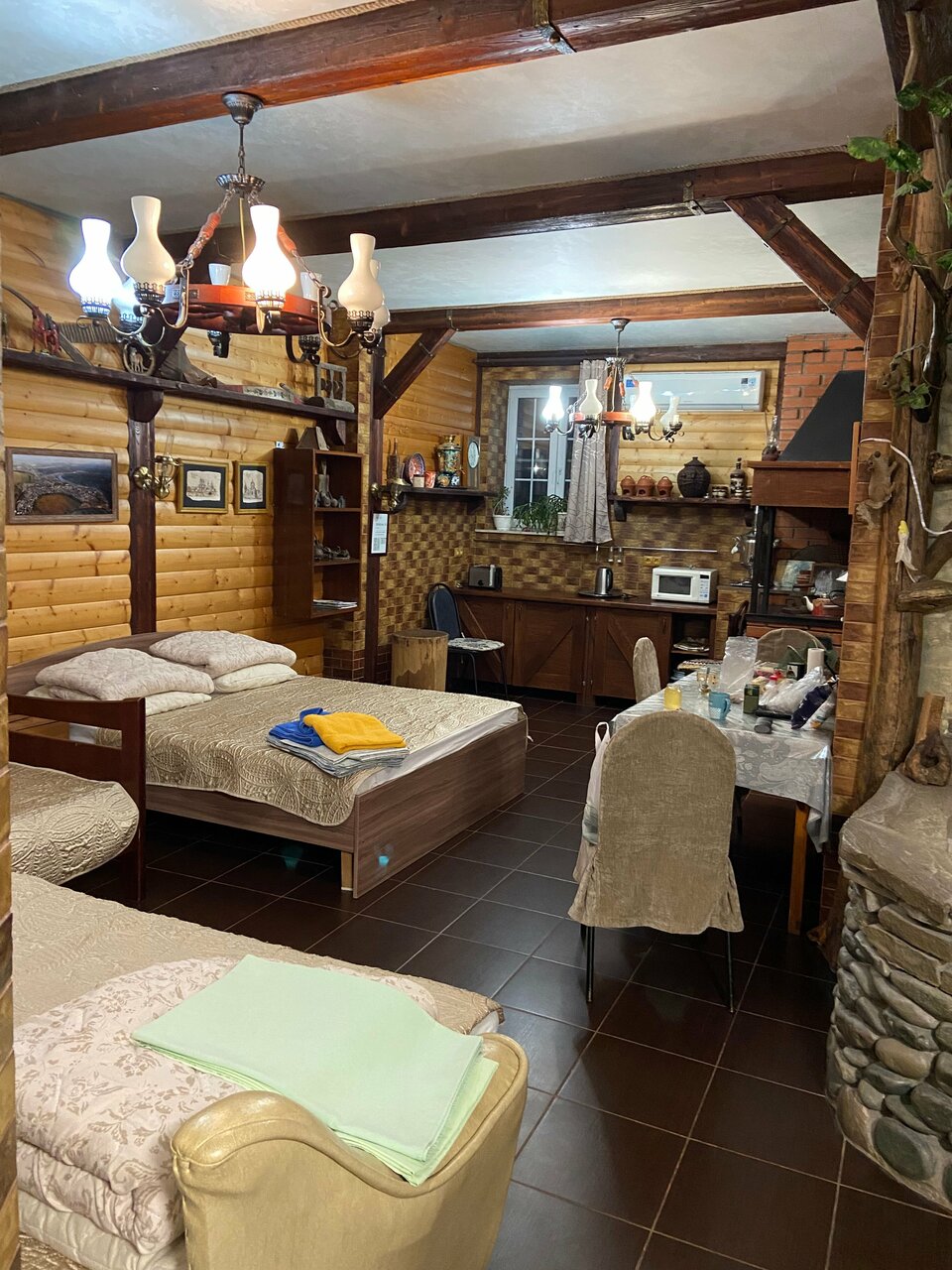 Отличное место для остановки. Останавливались по пути с Ярославля до Анапы. Встретила нас женщина, показала наше место проживания, кратко рассказала про историю города и ближайшие достопримечательности, где можно заказать покушать. В самом номере из еды нам оставили 4 куриных яйца, небольшой кусочек масла, батон, чай, сахар и еще много чего))) голодными не остались, спасибо большое за это. У нас был люкс с баней и бассейном ( он был не доделан). Так же в номере есть фен, гель для душа и шампунь. Из минусов- это очень слабо работающий слив в душевой… Было очень чисто. Много спальных мест, большая площадь. Если исправить слив- то все просто супер