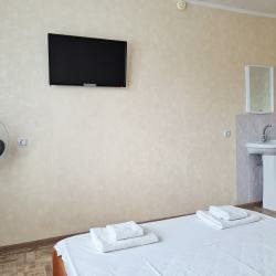 Большая парковка рядом, есть магазинчик неподалёку. Рядом набережная с хорошим оборудованным пляжем, освещённая благоустроенная прогулочная зона. Номер большой, телевизор, стол, чайник, раковина. Душ и туалет на этаже. Всё достаточно просто, чисто. Не хватало кондея. Отдельная благодарность столовой за ужин и завтрак: еда бесподобна, порции большие. Поужинать можно с 19.00 до 23.00. Завтрак с 7.00.