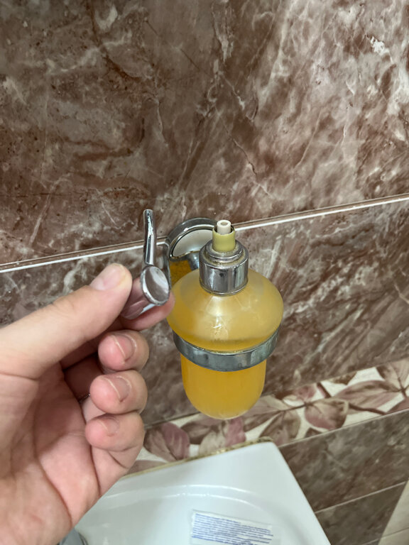 Душевая кабина грязная, остатки волос, пена засохшая на стенках. На двери ванной брызги, похоже от зубной пасты. У постели запах секонд хенда, в жёлтых тонах, на наволочках точки черные. Ещё и горячей воды не было в душе, причем из крана текла.