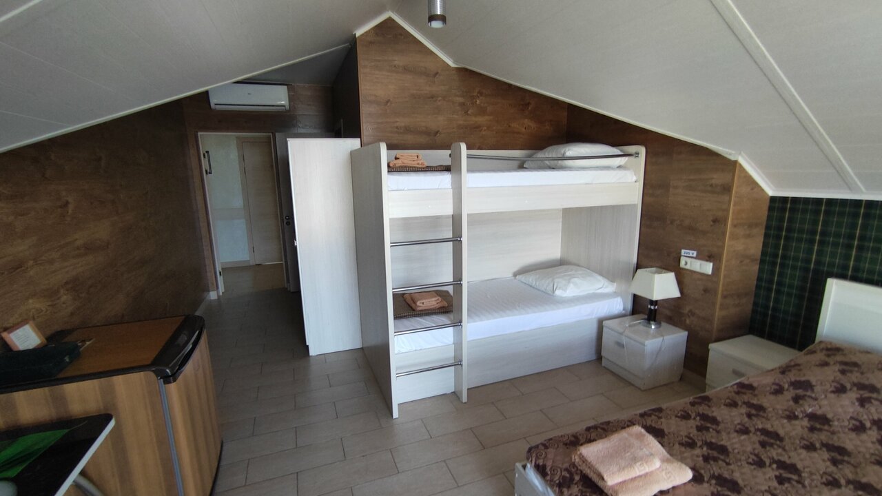 Небольшой аккуратный отель, есть все необходимое и достаточно тихо. Снимали номер с 2мя отдельными кроватями, матрасы удобные. Администратор приветливая. Также посмотрела комнату на 4х- просторная и аккуратная, фото приложу. Достойный вариант для ночлега. Поблизости можно посмотреть разных достопримечательности.