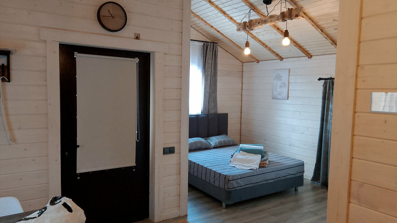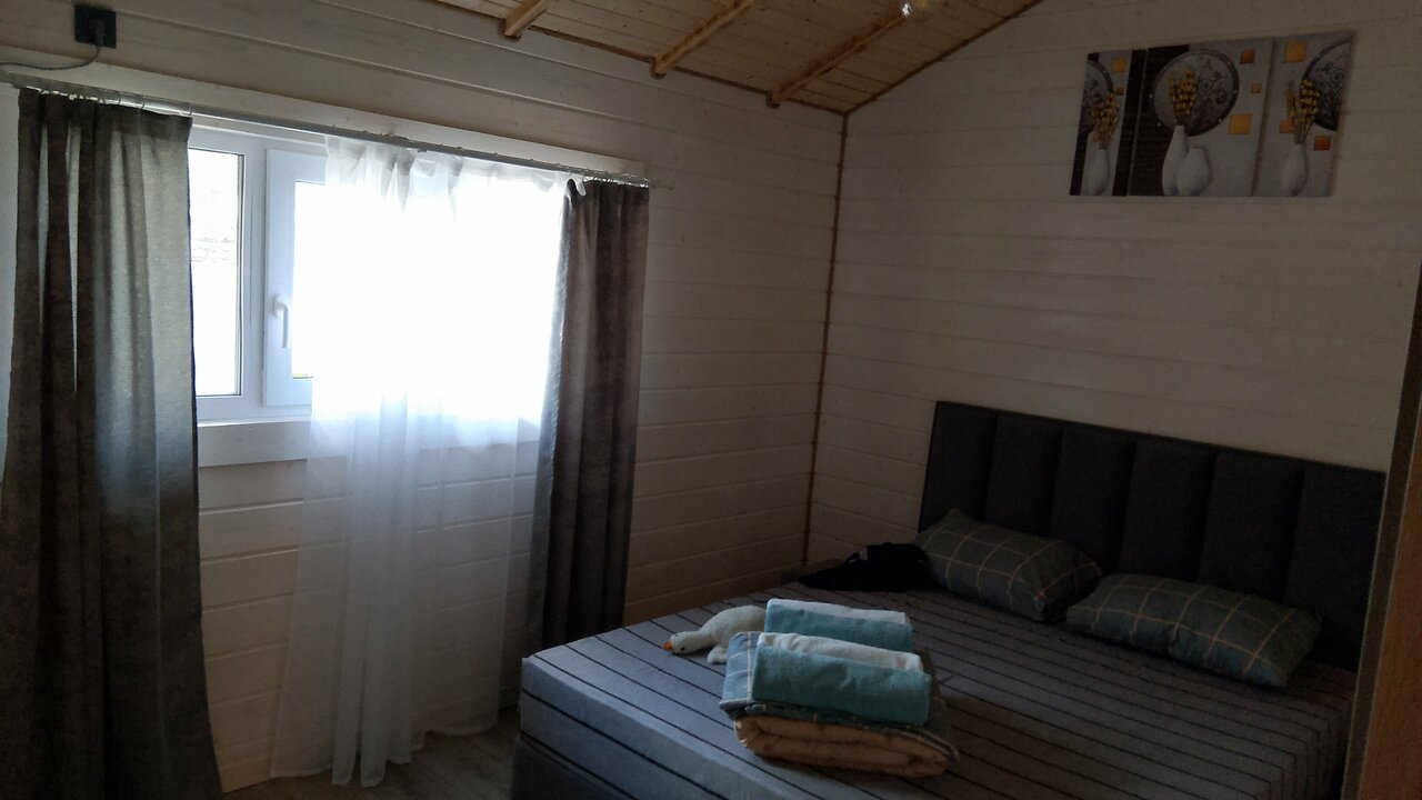 Хороший дизайнерский ремонт двухкомнатных домиков. Дома каркасно- щитовые, теплые, с приятной атмосферой и довольно свежей постройкой. Прекрасно спится на больших удобных кроватях