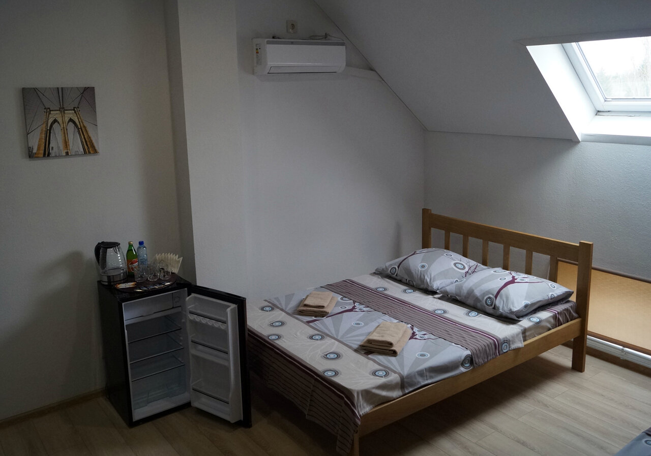 Впринципе для остановки на одну ночь адекватный отель. Набор удобств стандартный: кондиционер, телевизор, Wi-Fi, чайник, холодильник. В коридорах на этажах стоит кулер. Кровати просторные. Наполнение номеров не самое дорогое, но и не совдеп. Гостиница чистая, светлая, ремонт ещё не успели убить. В 100 метрах от гостиницы есть ‘Пятёрочка’. Также есть парковка во внутреннем дворике. Из небольших недостатков можно отметить слабый напор воды в душе и медленный слив (возможно это временно) . Ну и конечно расположение возле трассы (нам не мешало, но некоторых ночью может напрягать).