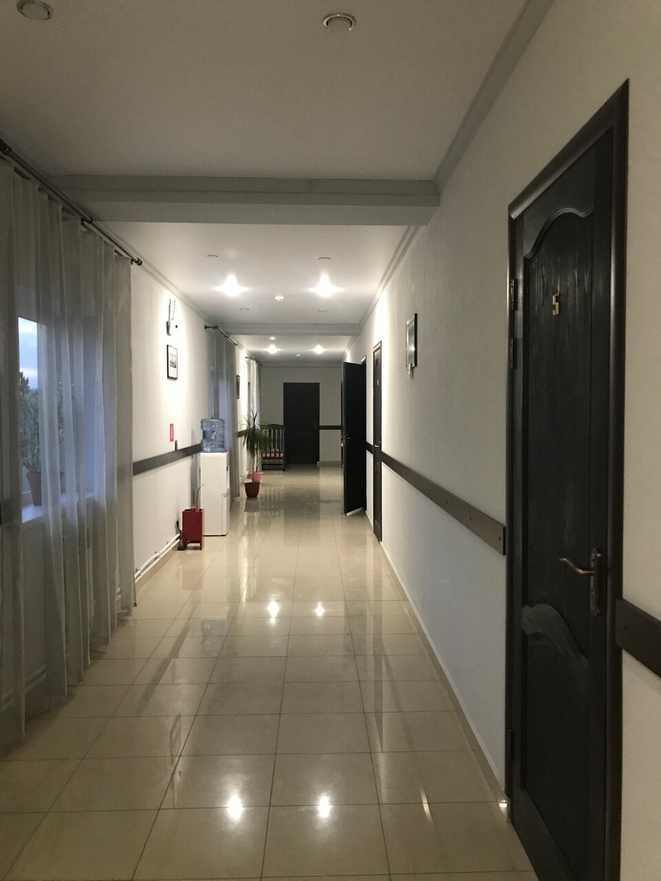 Номер 5, 3-местн. Условия выше среднего, но не супер. Перебои с водой. Не хватало розеток. Не запиралась дверь в туалет. Отель немного не достроен. Мебели хватает, есть холодильник, кондей, отопление греет хорошо. В целом пока уютно, удобно и не дорого. Персонал очень вежлив и контактен. Пока всё новое — проживание достаточно приятное, но видно, что на строительстве жёстко экономили и техника начинает разваливаться уже сейчас. Порадовала копия крокодила в натуральную величину на лестнице.