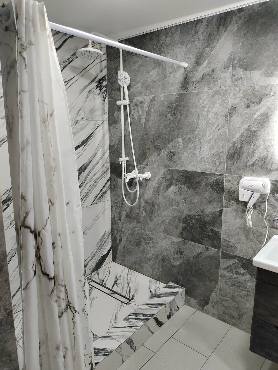 Все понравилось, чисто и уютно. В комнате есть душ. Удобное месторасположение. Закрытая парковка с камерами, при чем входит в стоимость номера. Вежливый персонал. Не пожалели, что остановились именно здесь.
