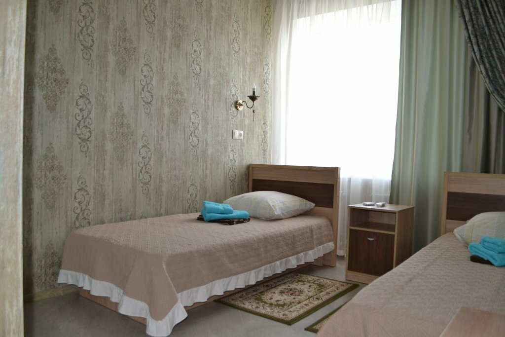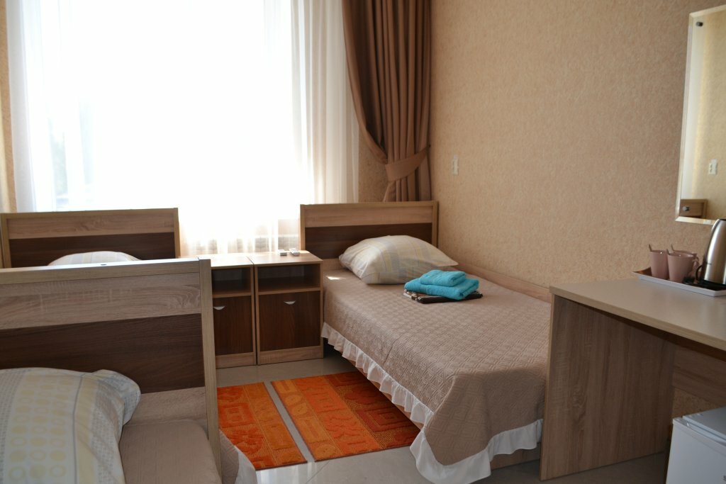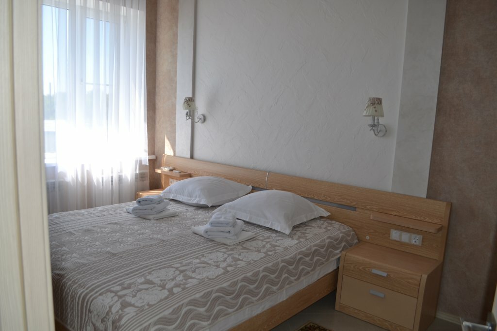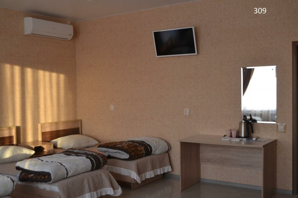 Замечательный отель! Останавливались по возвращению с моря. Кровати полно размерные, удобные, для нас это важный момент. Всё очень комфортно и чисто. Есть все необходимое: холодильник, телевизор, кондиционер и чайник (чай + сахар). При отеле есть кафе. Номера на разный бюджет от эконом класса до люкса. Бронировали заранее. Недалеко от трассы. Плюс бонусом вода из скважины пригодная для питья. Чайник идеально чистый, без накипи. Отлично! Нам есть с чем сравнить. Рекомендую однозначно!