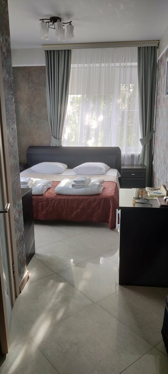 Отличная семейная гостиница, чисто, уютно, красиво. В номере холодильник(в холодильнике бар,за доп. плату), душ и туалет на 2 номера. Общая просторная кухня. Все очень понравилось, особенно детям.