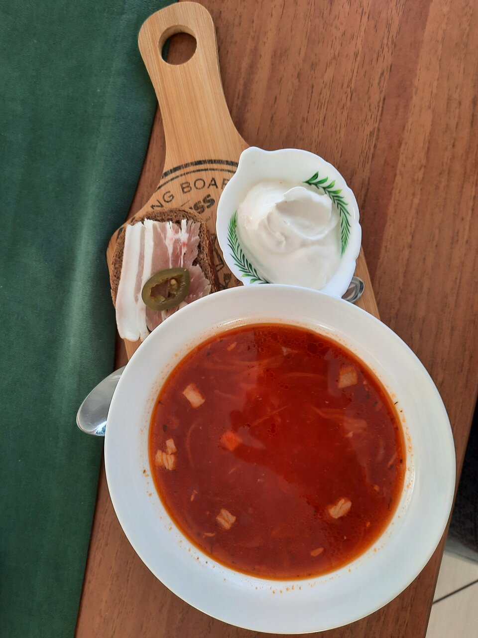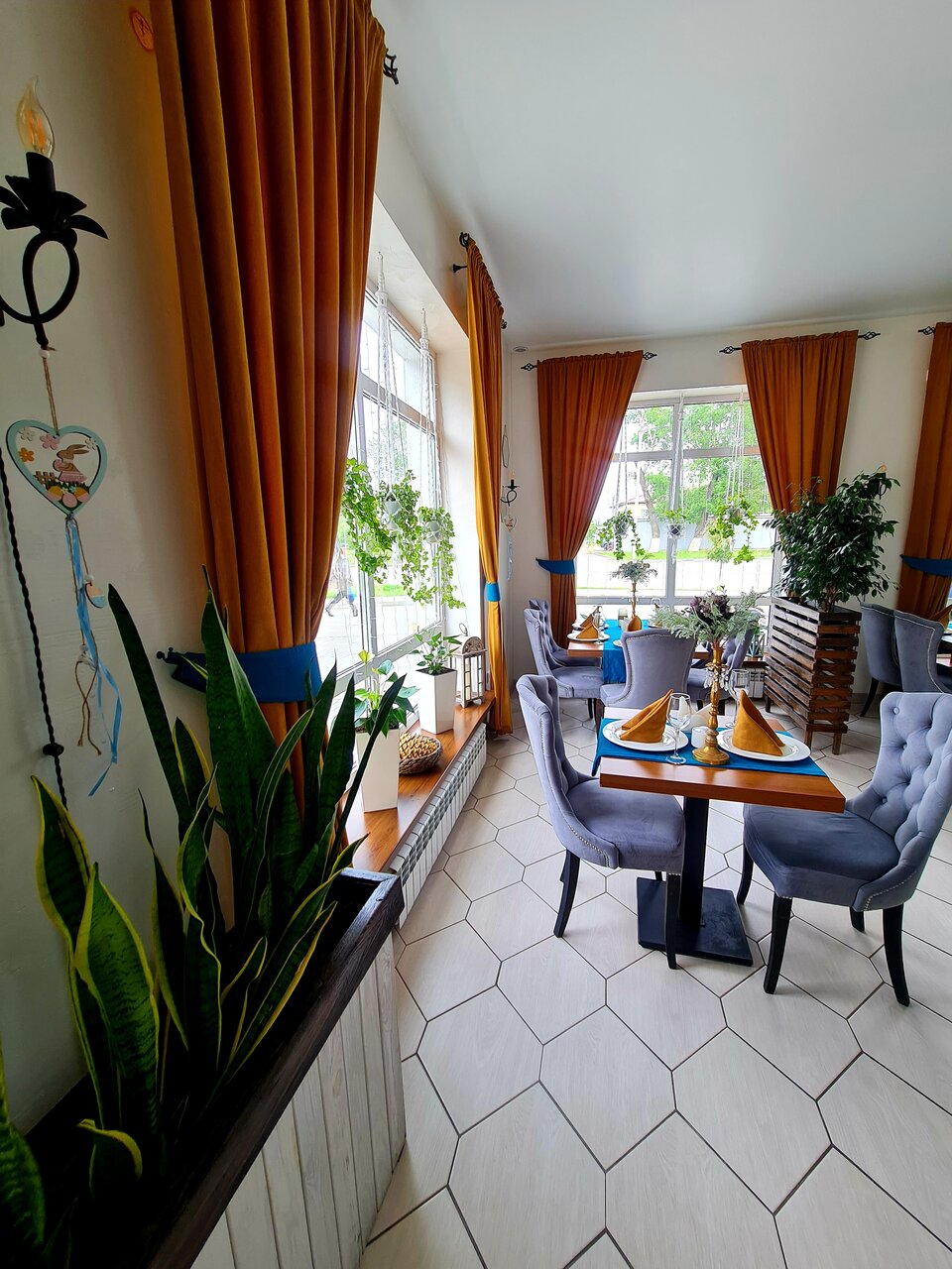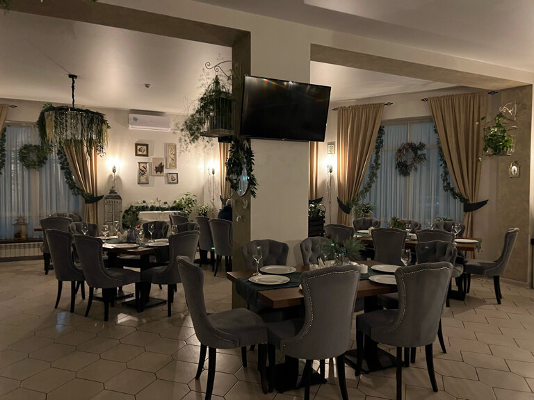 Ресторан.ну,рэсторан с натяжечкой.кафе сельскаго пошиба.персонал вежлив, отзывчив,учтив.рассказали где и чтт посмотреть в городе. Теперь и по Борщёву.еда на троечку.куриный булион с лапшой.сама лапша хороша,а вот булион ненаварист,мясо куры жосткое.мрак.свиные рёбра то ЖО оставляют желать лучшего. Один раз сходили и хватит.