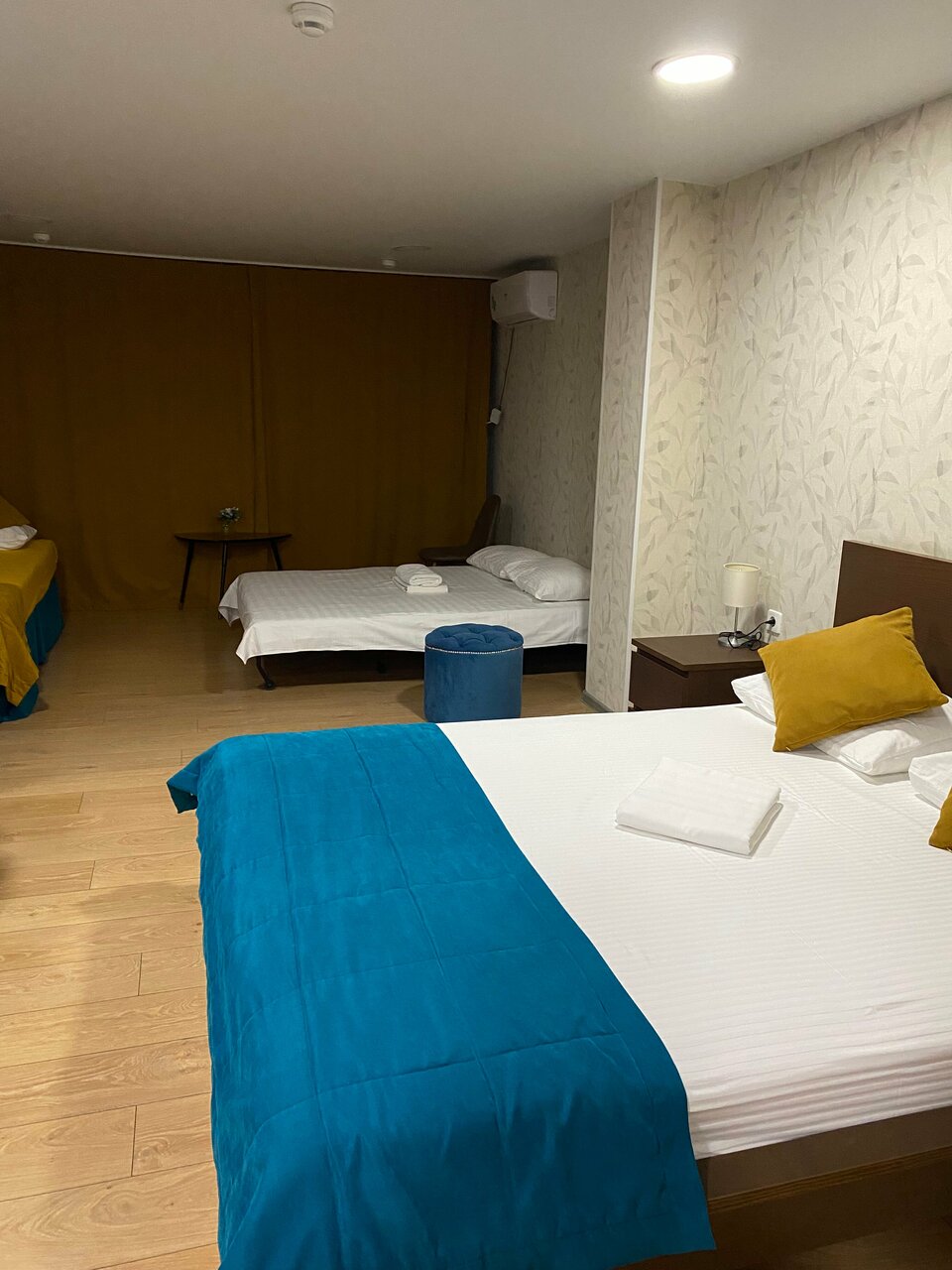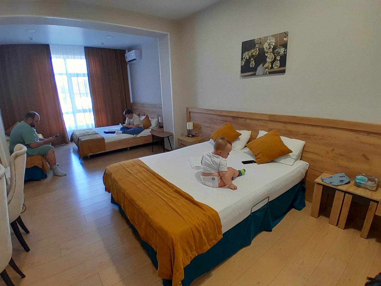 Останавливались на одну ночь.Приехали в 24.Бронировали за пару дней,так как очень много народа.В семейном номере разместились семьей с 3 детьми.Номера чистые и большие.В номере в целом все необходимое есть(полотенца,зубные щетки,шампунь,мыло,гель для душа,фен,тапочки,чай ,кофе,холодильник) Персонал приветливый.Нам очень понравилось.Еще тихо,видимо неплохая звукоизоляция.