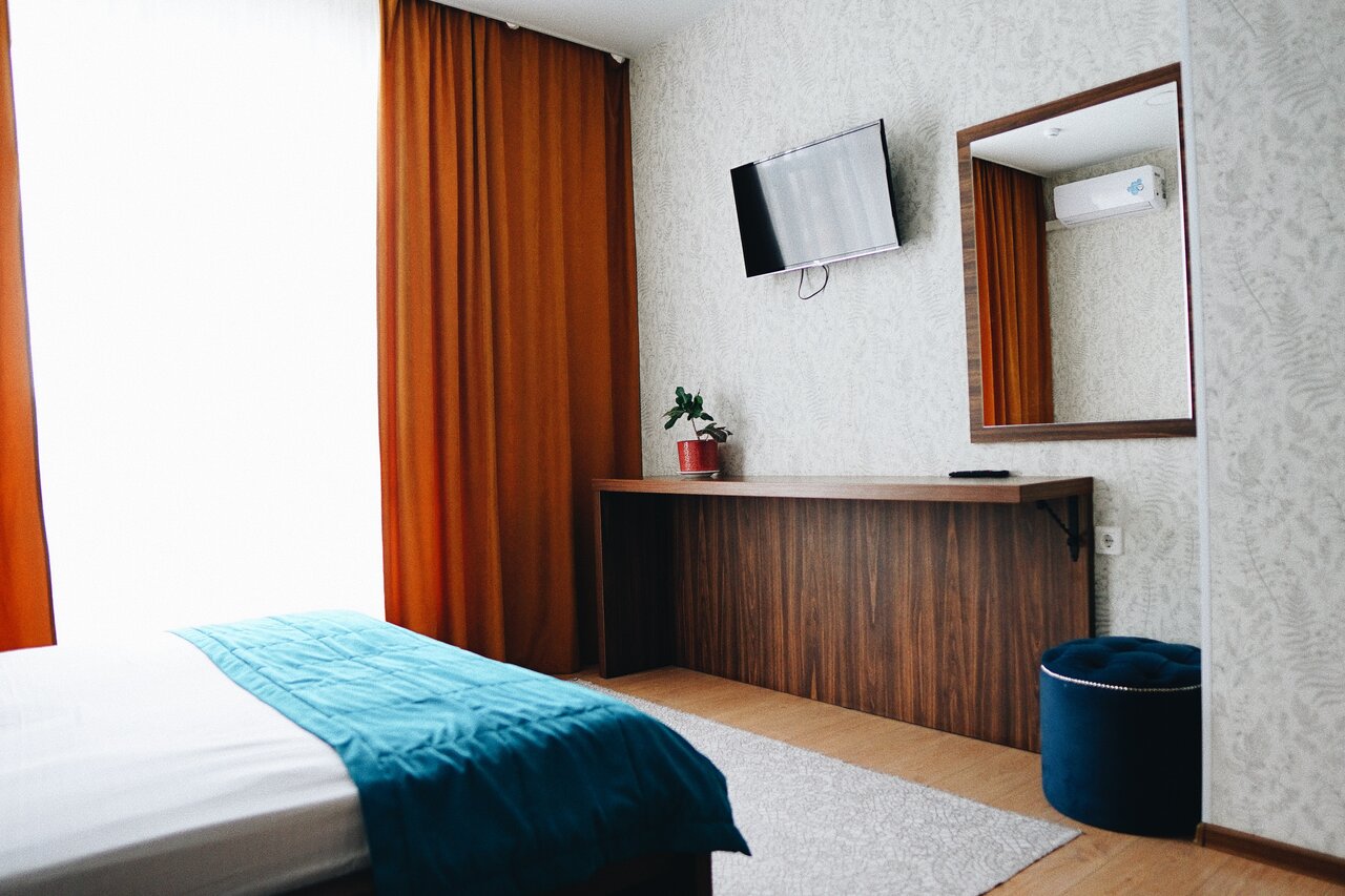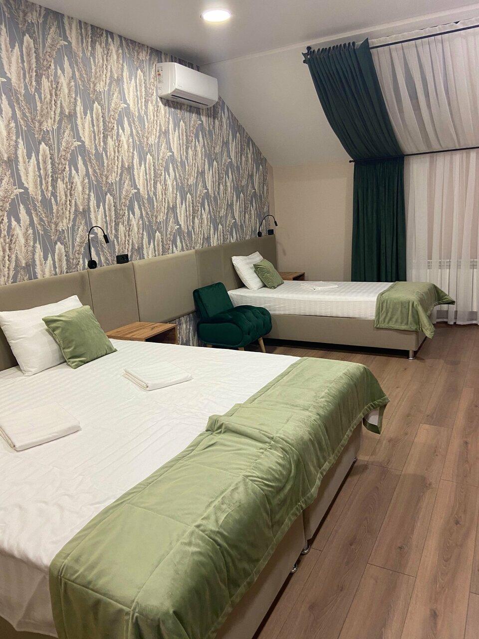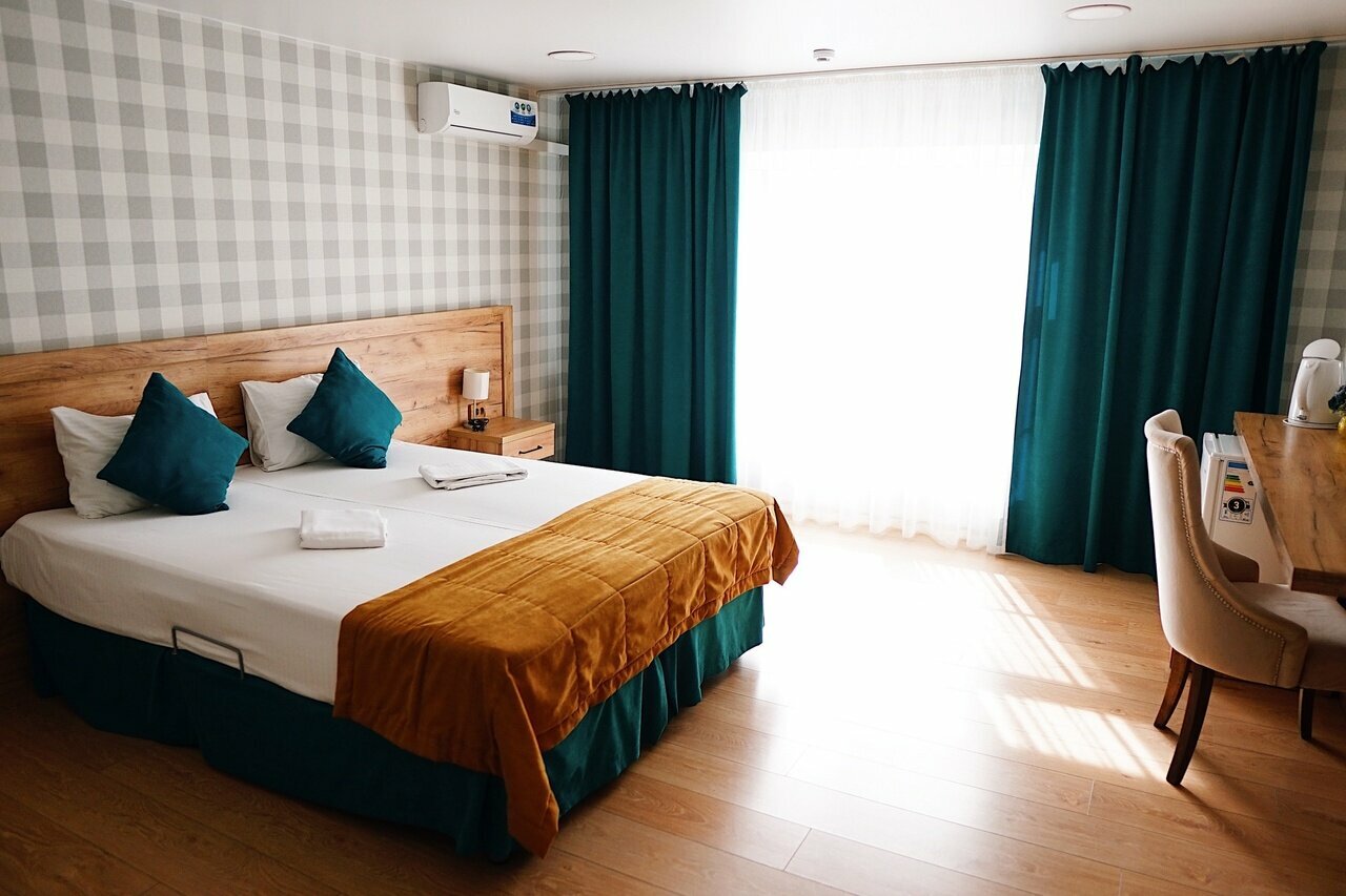 Отличный отель. Доброжелательная и отзывчивая администратор. Номер стандарт большого размера — были приятно удивлены. Новый ремонт, мебель. При отеле есть ресторан, после дороги вкусно поужинали, рекомендуем. Нам очень понравилось! Желаем всяческого процветания!!!