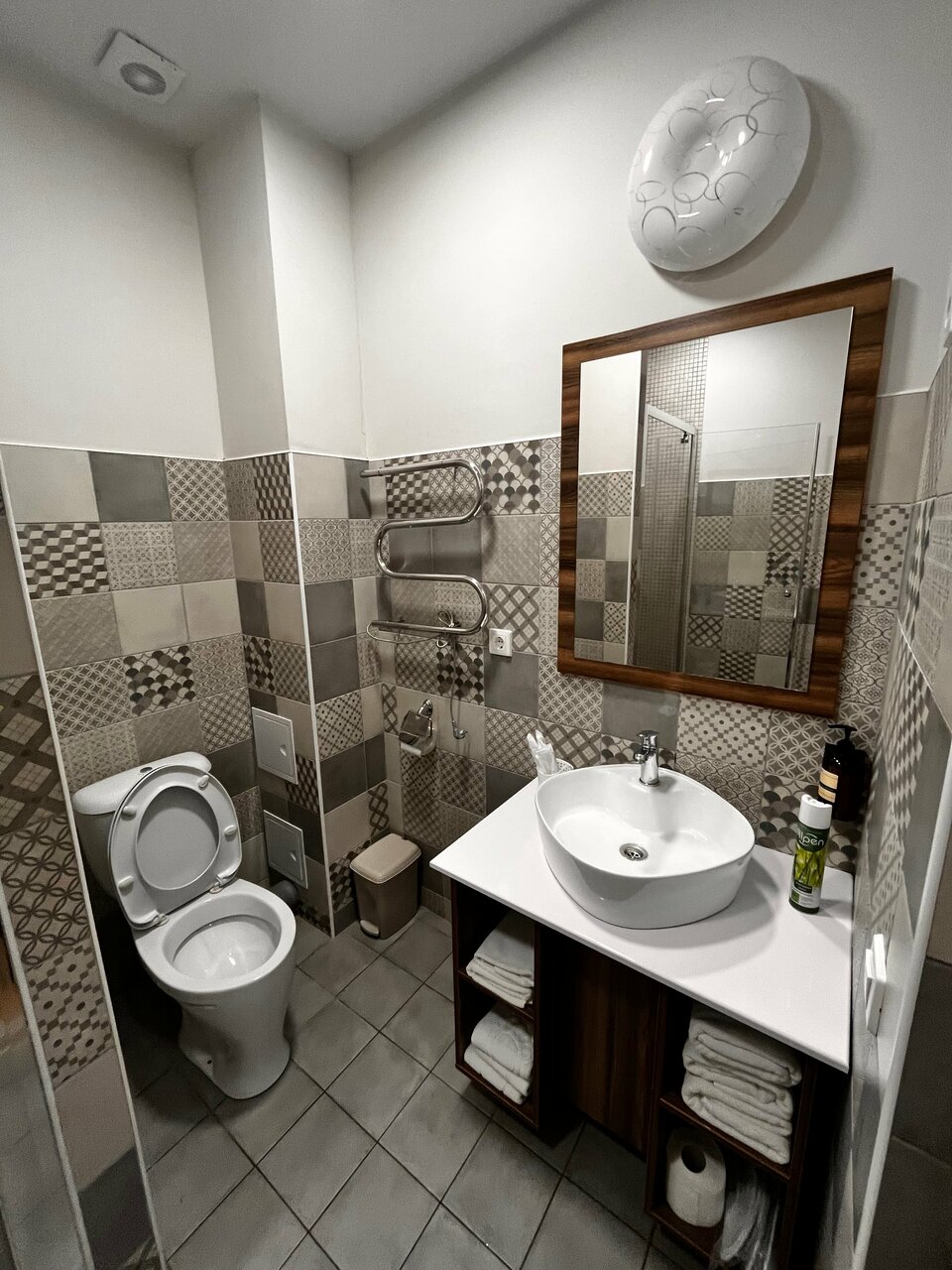 Апартаменты – комфорт, как дома!▪больше места для отдыха или работы;▪Собственная кухня с посудой и обеденная зона.▪Кондиционер и телевизор для комфортного отдыха.▪Собственная ванная комната и гигиенические наборы.