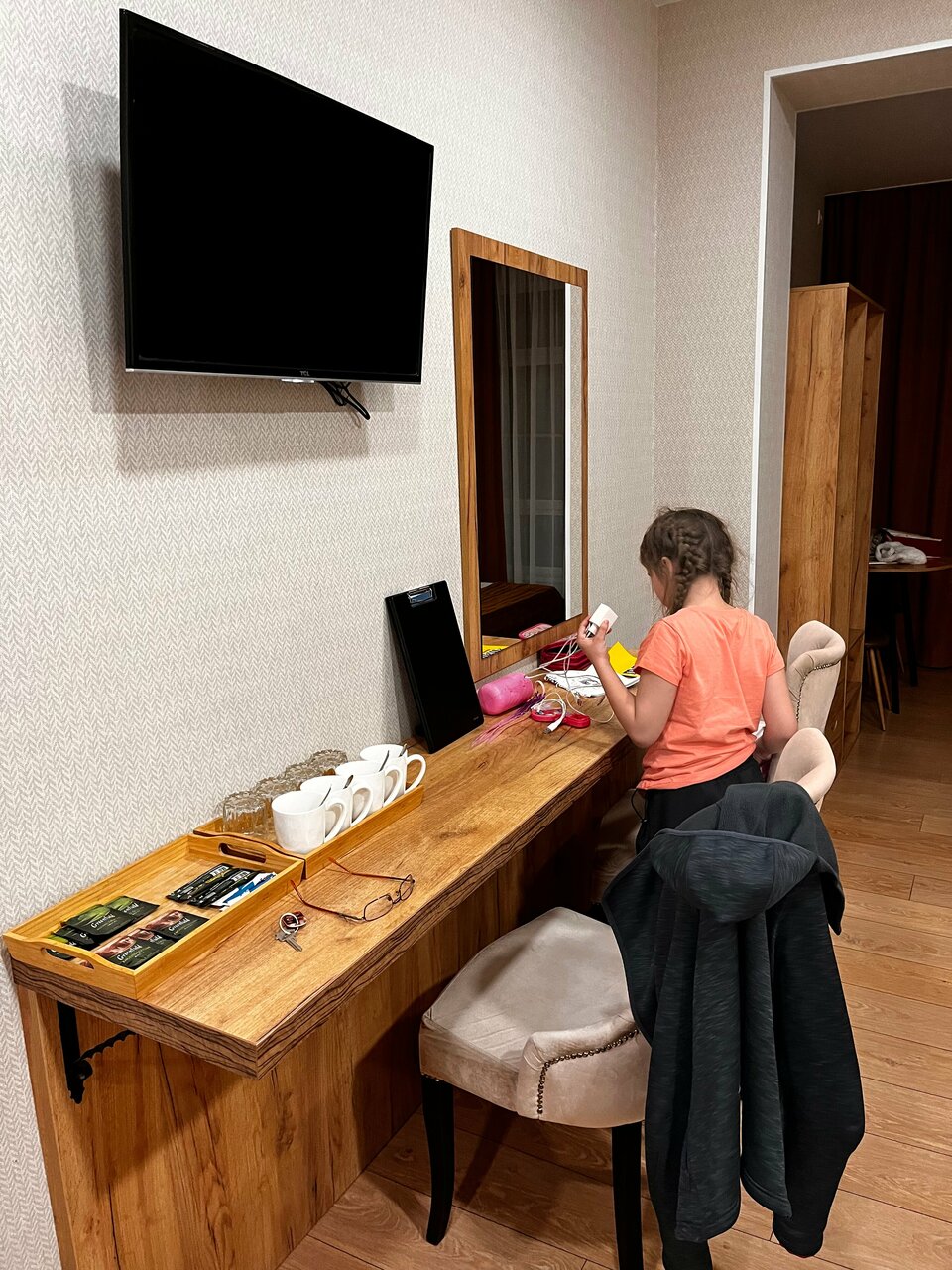 Полное разочарование. Останавливались на ночь 28.07.24 по пути из Анапы в семейном номере. Зачем-то оставили в номере детский манеж, казалось бы оставили и оставили, но пока мы ходили ужинать его убрали. Вопрос — почему нельзя было подготовить номер заранее? На полу в номере мусор. Душ — катастрофа. Не мытая сантехника и держатели для гелей, шампуней. Напор воды в течение минуты два раза меняется от нормального до полностью отсутствующего, помыться нормально просто не возможно. Зачем этот коврик на полу душа, это же совсем не гигиенично. Больше сюда ни ногой и никому не советую.