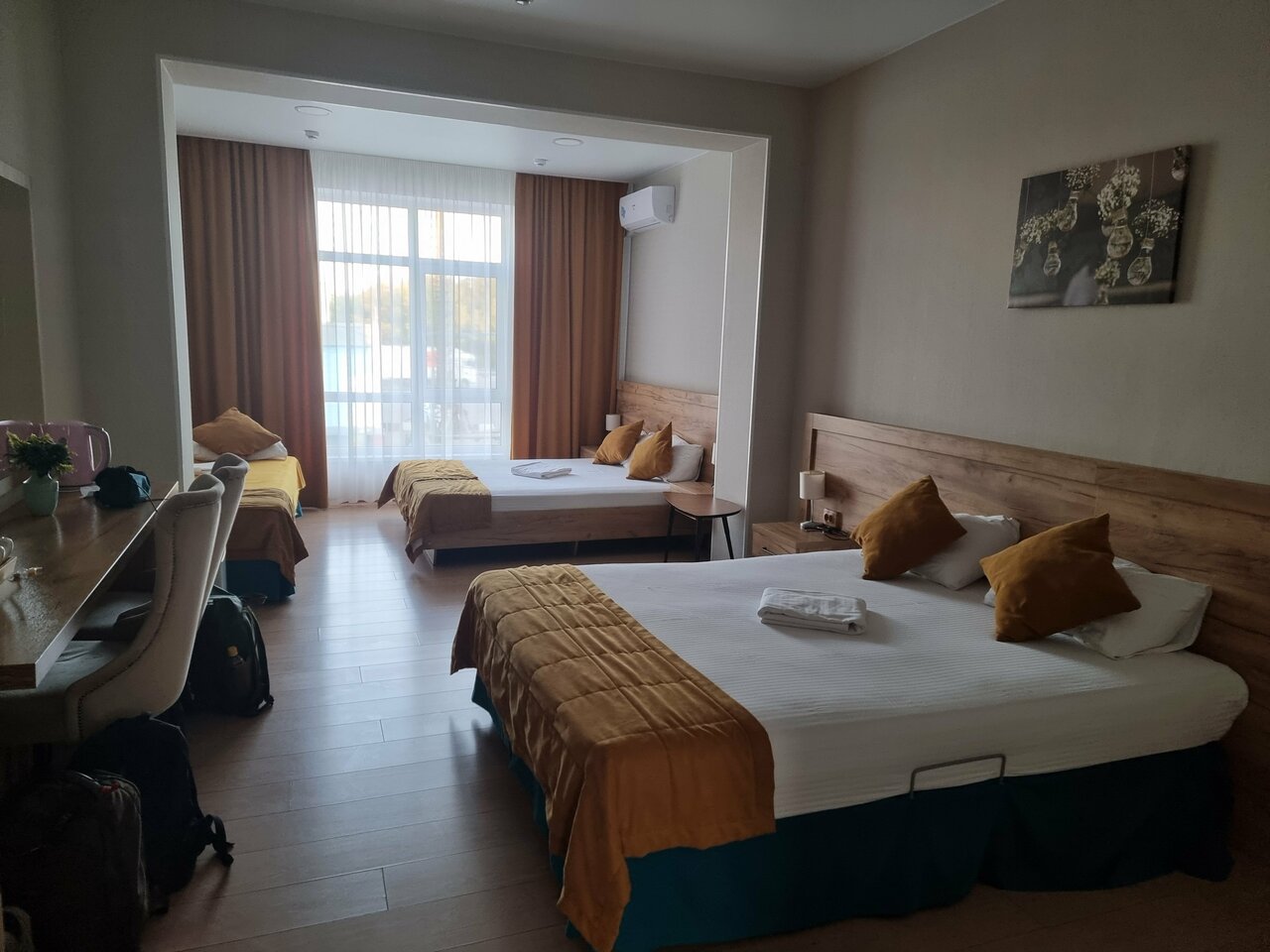 Любимый отель! Недалеко от трассы. Чисто, современно, эстетично! Всегда останавливаемся в нем на обратном пути. И ооочень вкусно в ресторане