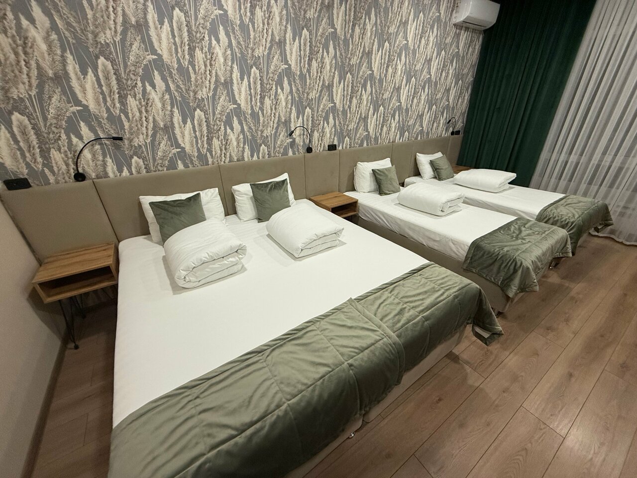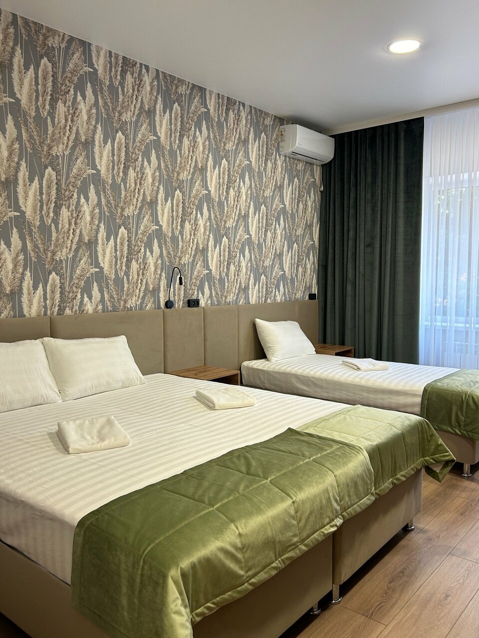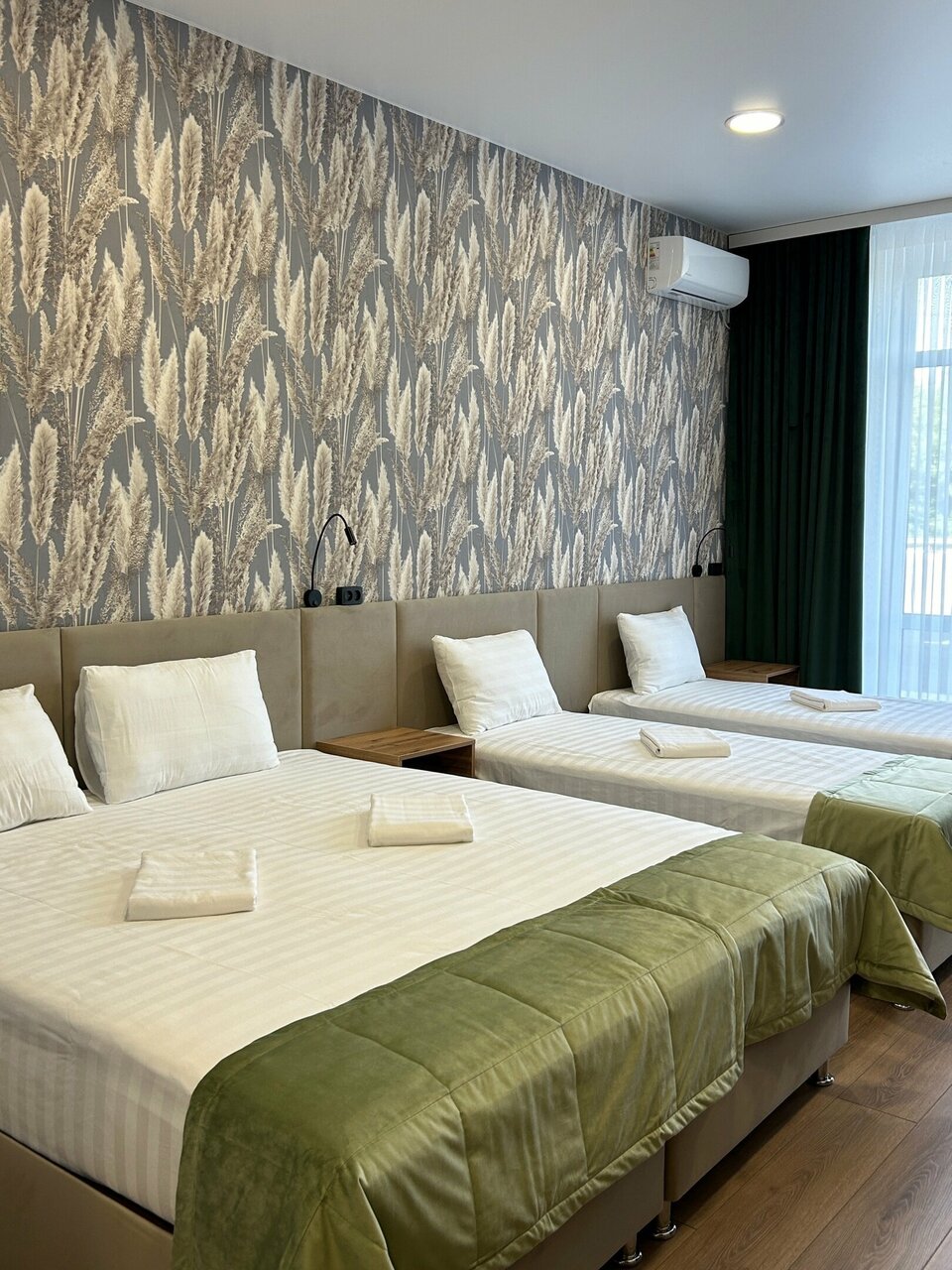 Комфортабельный трехместный номер с со всеми удобствами. В номере есть телевизор, кондиционер, собственная ванная комната, холодильник, рабочая зона и все для Вашего отдыха.Бронирование по телефону: +7 (960) 126-47-47