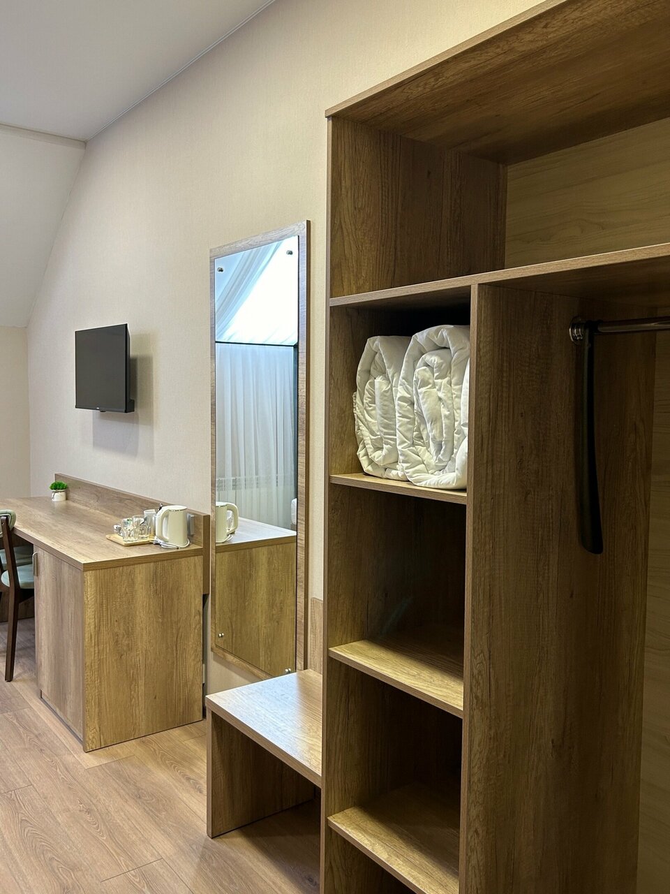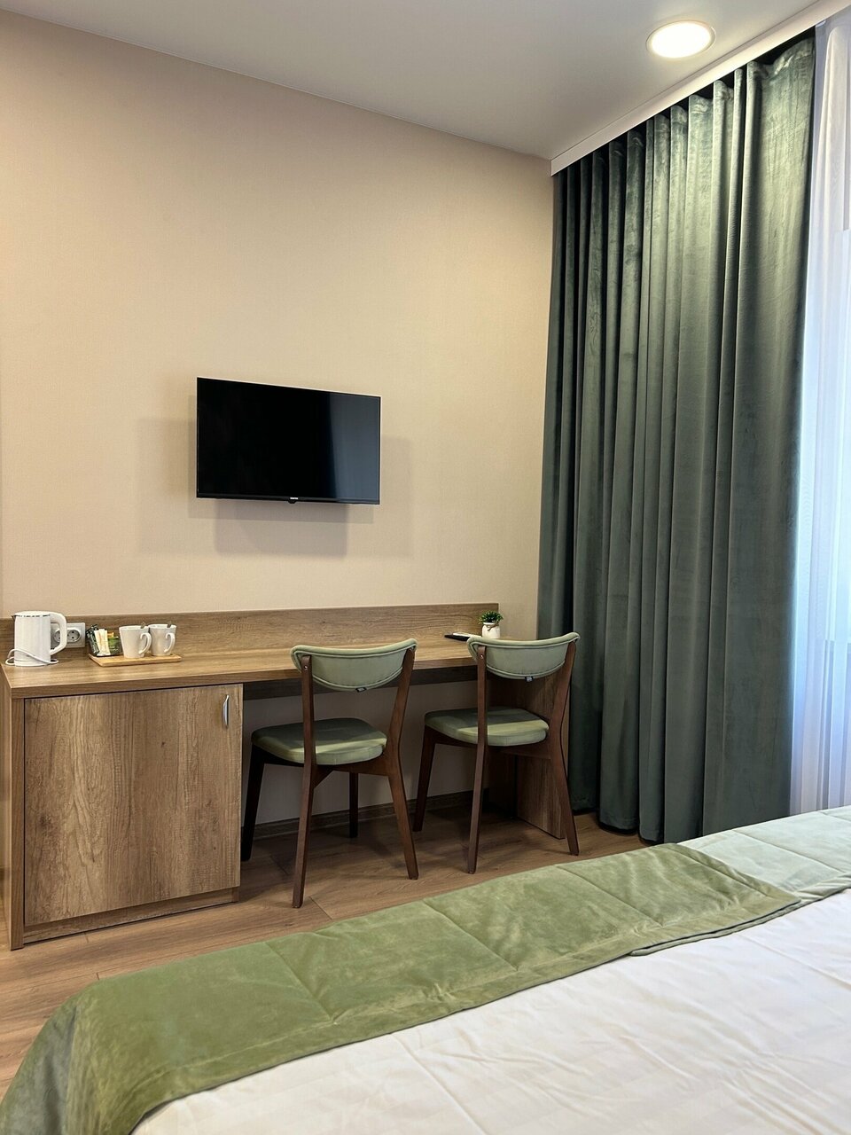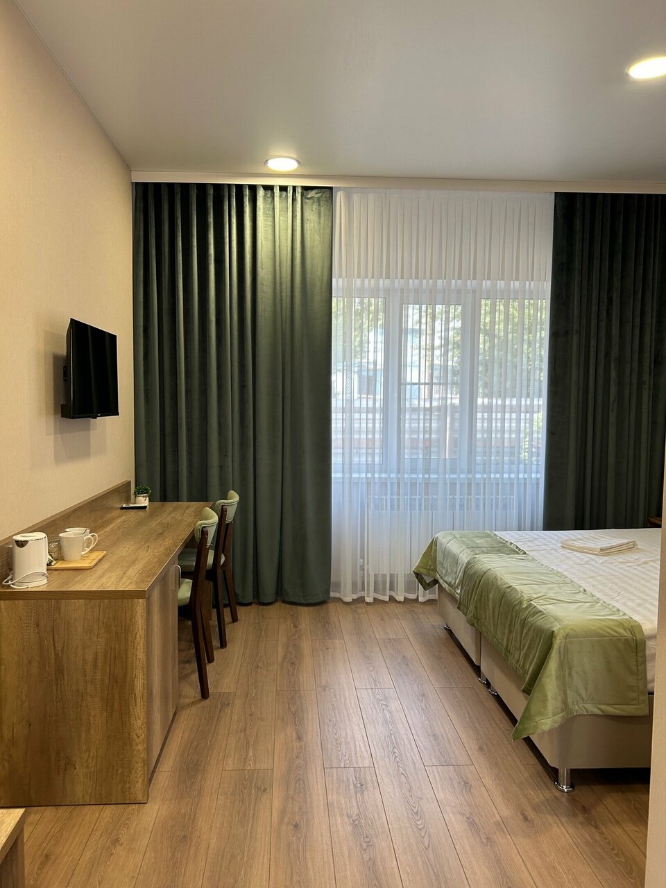 Комфортабельный двухместный номер категории Люкс со всеми удобствами. В номере есть телевизор, кондиционер, собственная ванная комната, холодильник, рабочая зона и все для Вашего отдыха.Бронирование по телефону: +7 (960) 126-47-47