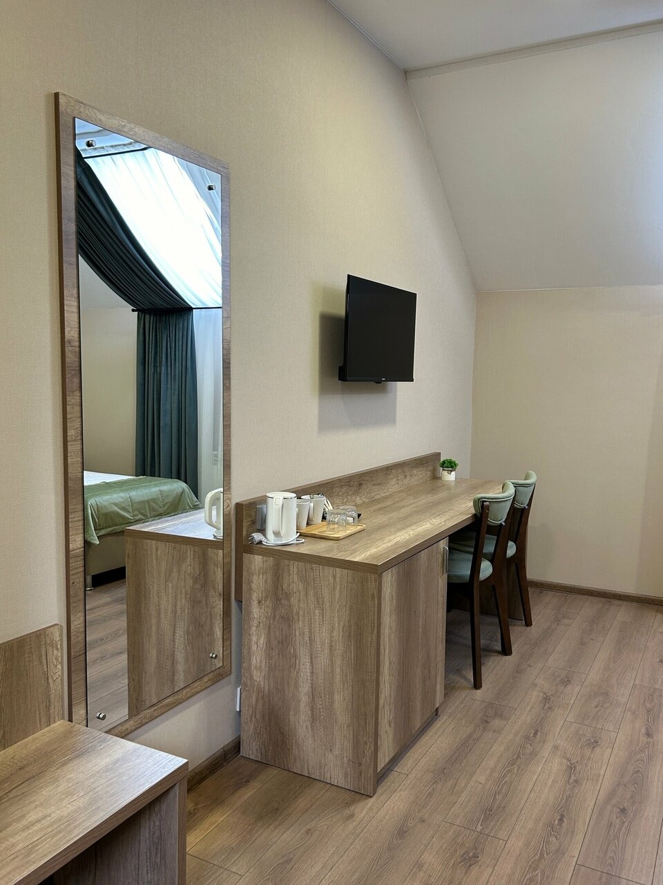 Комфортабельный двухместный номер с со всеми удобствами. В номере есть телевизор, кондиционер, собственная ванная комната, холодильник, рабочая зона и все для Вашего отдыха.Бронирование по телефону: +7 (960) 126-47-47