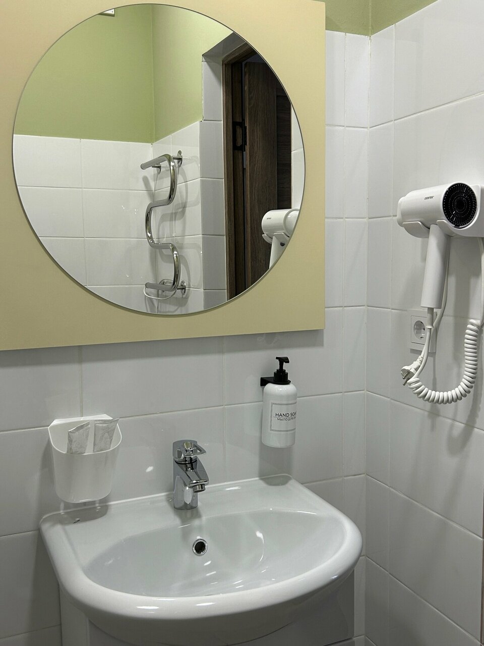 Отличный отель за свои деньги, брали семейный на 4х. Номер оч чистый , уютный. Белоснежная постель и полотенца! Даже одноразовые щетки были, что оч редко для придорожных отелей. Вода в свободном доступе на этаже. Выбирали отель по отзывам , и действительно , я так же могу с уверенностью поставить 5⭐️ ! Хотя я оч большой критик. Минус для меня один, в номере оч жарко, на такой номер много секций батарей и они в +5 на улице оч прилично топят. Пришлось спать с приоткрытым окном, но шум от трассы давал о себе знать. Для зимы это будет плюсом Звезду не снимаю , не считаю это общим минусом. Спасибо! На данном участке трассы, теперь знаем , где можно переночевать.