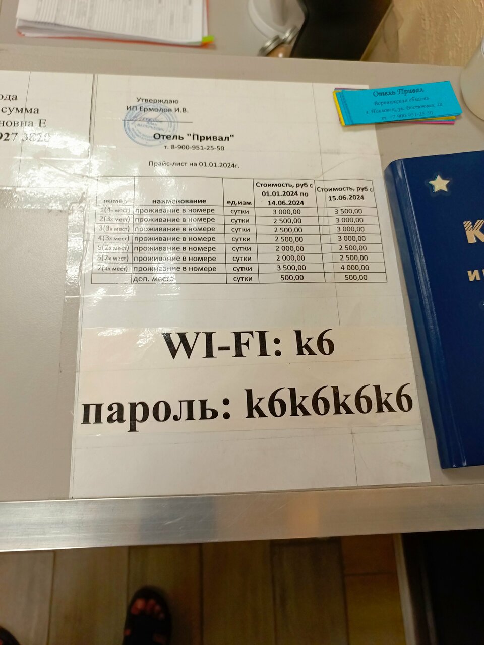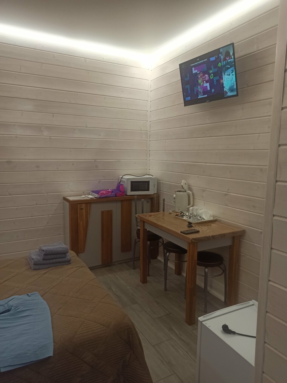 Это лучшее сочетание цена/качество из того что я видела. 1. Удобное расположение на трассе М4. Да небольшой съезд, но зато тут маленький городок Павловск, в котором есть магазины и ресторанчики. Рядом с самим отелем есть хорошее кафе. 2. Очень вежливый администратор, радушная леди. Видно, что хороший человек) Все рассказала и по отелю, и по городу: куда сходить, где поесть и т.д. 3. Сам номер маленький, но в нем есть всё! Двуспальная кровать Душ/туалет Полотенца Набор зубная паста и щетка Телевизор Чайник + чай и сахар Одноразовые тапочки Столик для приема пищи 4. Все очень чисто. На стаканах никаких разводов. Душ и шторка в нем (которой иногда можно изгонять дьявола) чистые. Постельное белье пахнет чистотой и кондиционером. 5. На втором этаже есть кулер и микроволновка. 6. Все пишут про удобство кроватей: нормальное))) спалось хорошо. 7. В номере тепло, есть кондиционер на летний период.