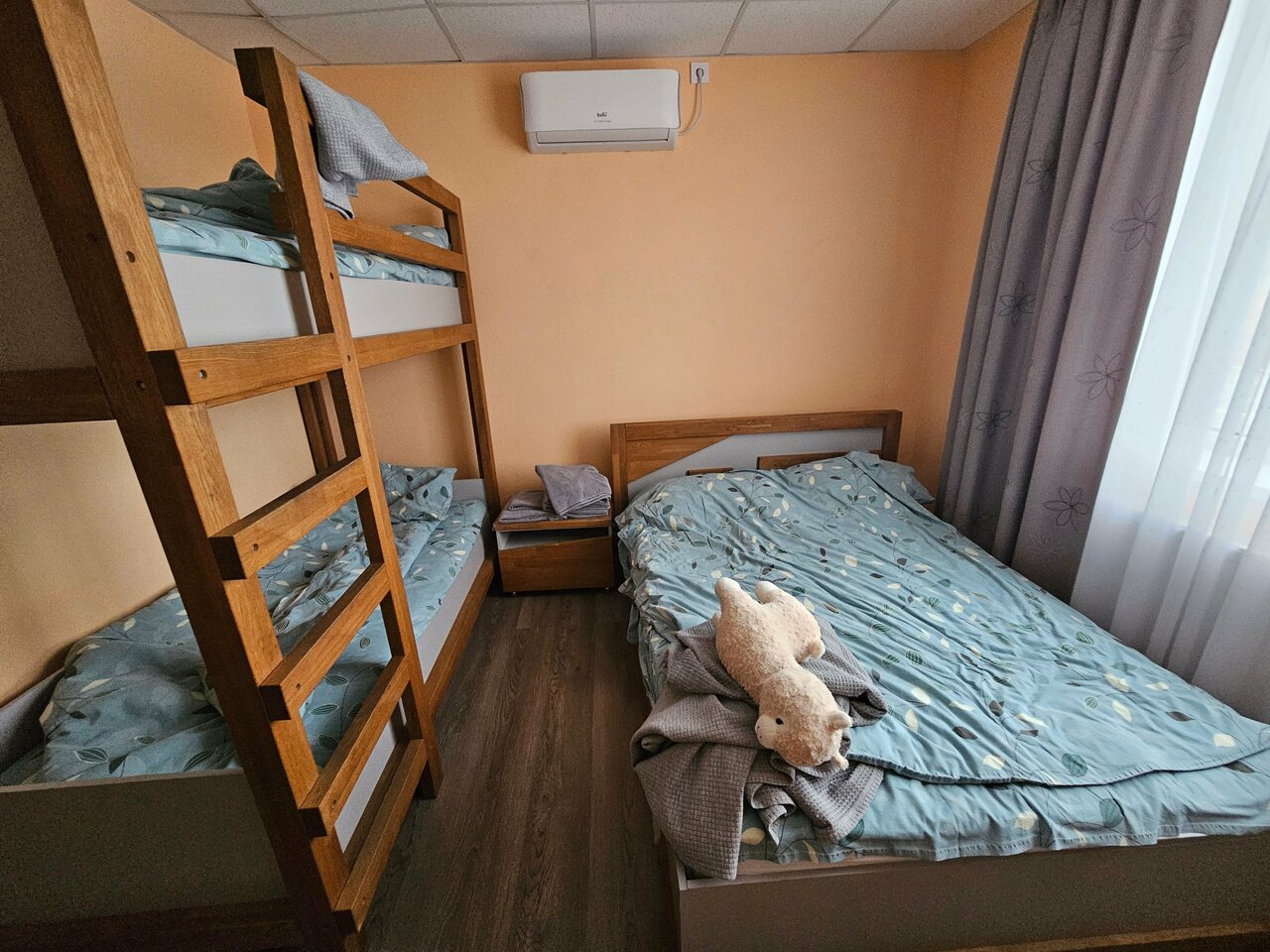 На семью из 4х человек номер прекрасный. Всё чистенько, полотенца, гигиенические наборы, тапочки, чай-кофе, на этаже кулер, микроволновка. Шум машин не напрягал, спали с дороги все. Единственное, чего в номере не хватило — это ночничка. Свет если включается, то яркий во всем номере. Но это, конечно, мелочи. Моё мнение 5✨️