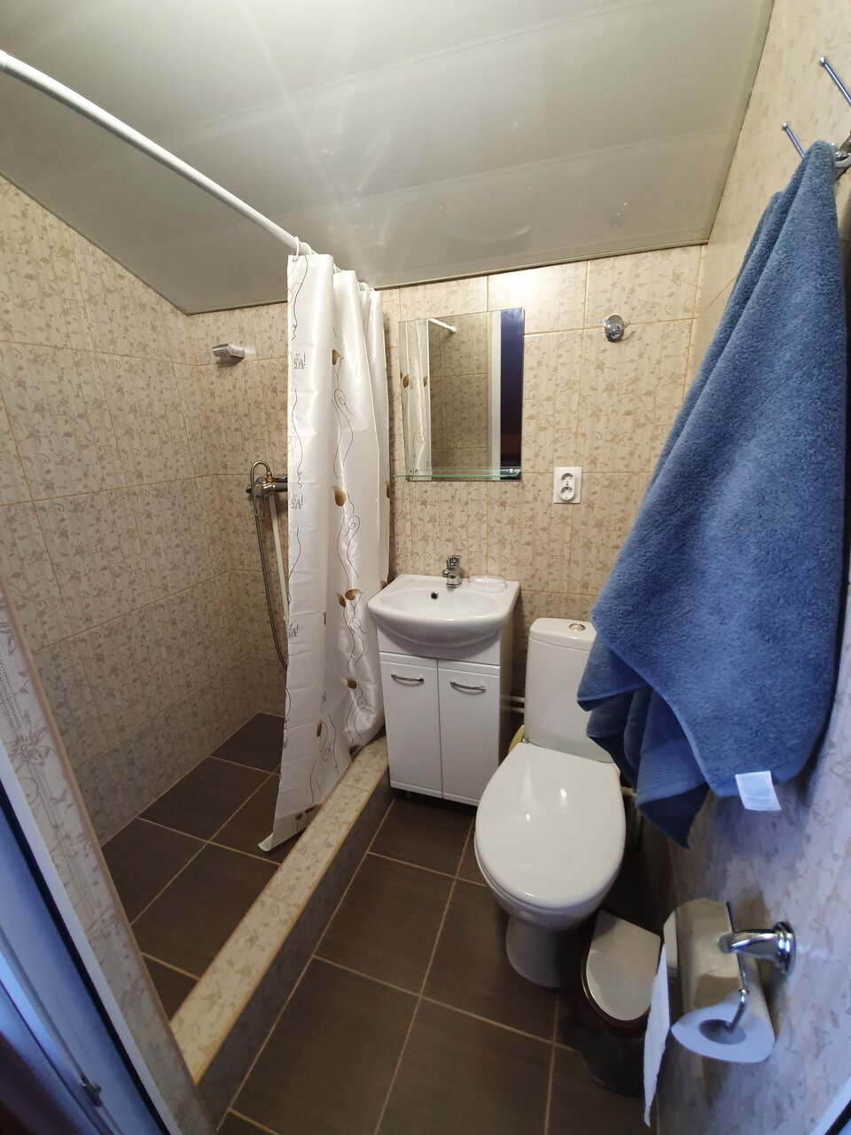 Я остался под впечатлением от этого мини отеля. Честно говоря я думал , что будет не очень. Но номер чистый просторный, одна большая удобная кровать, вторая односпальная. Ванная комната небольшая с хорошей душевой, при этом стоит хорошая сантехника. И стоимость номера вполне приемлемая. Ещё одно его преимущество, он стоит на дороге, его не нужно искать в незнакомом городе.
