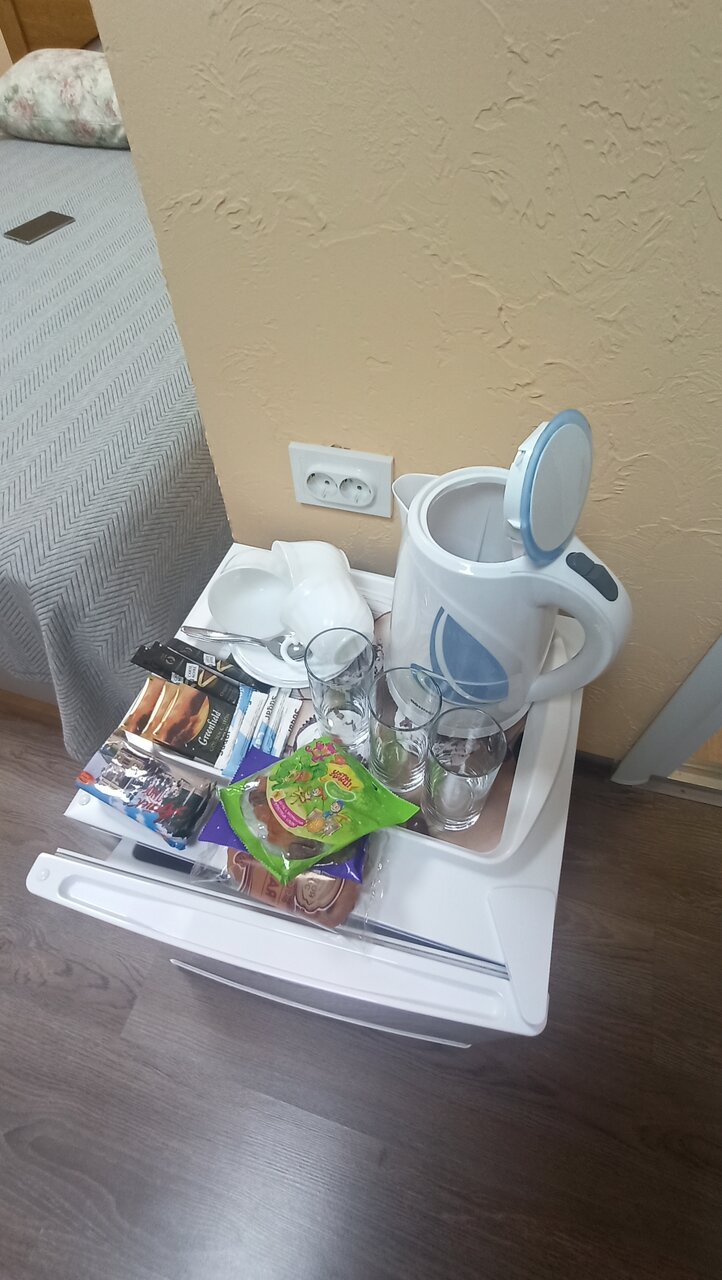 - Чайник, чай, кофе, сахар в номере.