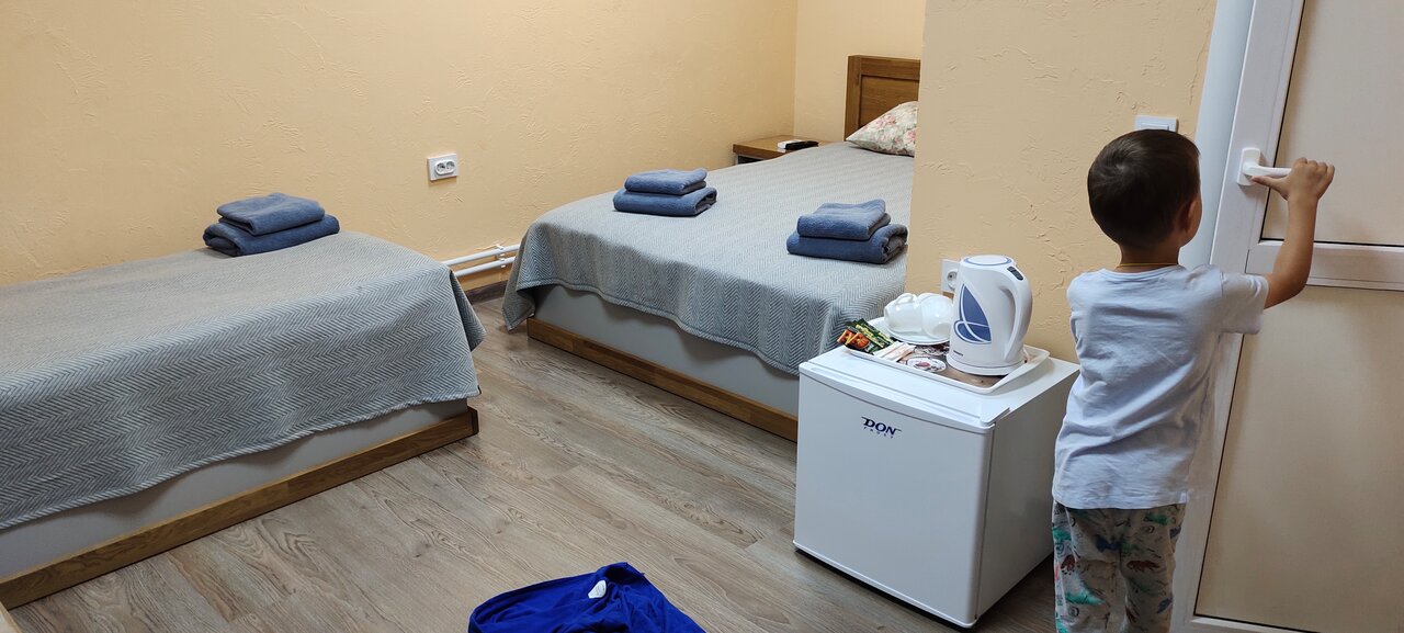 Хороший мини отель, все новое, чисто, в номере есть все необходимое включая зубной набор, холодильник и так далее. Нет проблем с водой, сразу идёт какая надо, хочешь горячая, хочешь холодная. Из минусов только не очень хорошая шумоизоляция. Матрас был удобный очень.