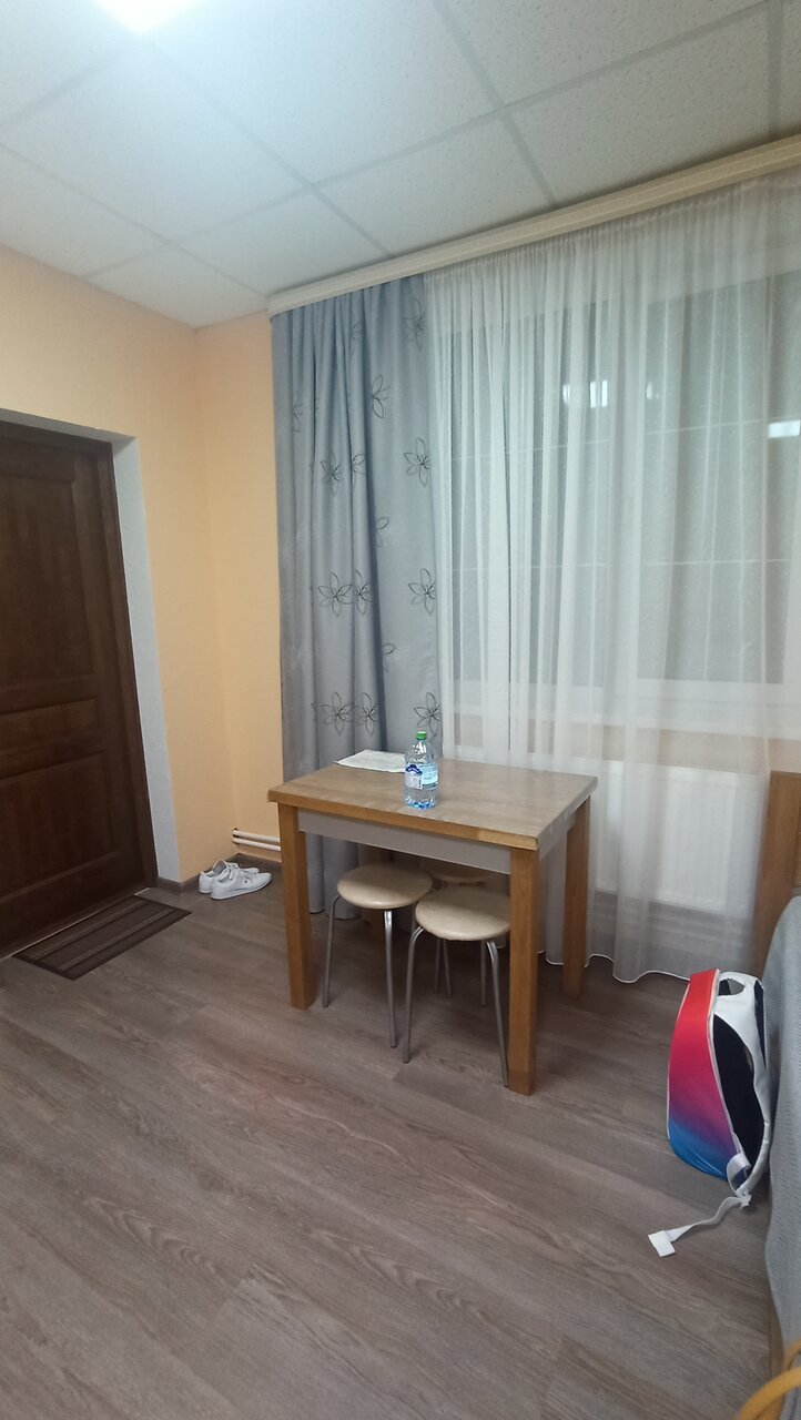 Останавливались на одну ночь: 2е взрослых и ребёнок. Несмотря на то, что приехали поздно нас приветливо встретили и проводили в номер. Очень благодарим за гостеприимство и сервис: всё чисто, свежее белье и полотенца, а так же одноразовые тапочки, зубные щётки, паста, шампунь и гель для душа. А ещё посуда, чайник, чай, кофе и сахар. В номере есть все необходимые удобства. На этаже кулер и микроволновка. Есть отдельная парковка. Нам понравилось. Рекомендуем ❤️