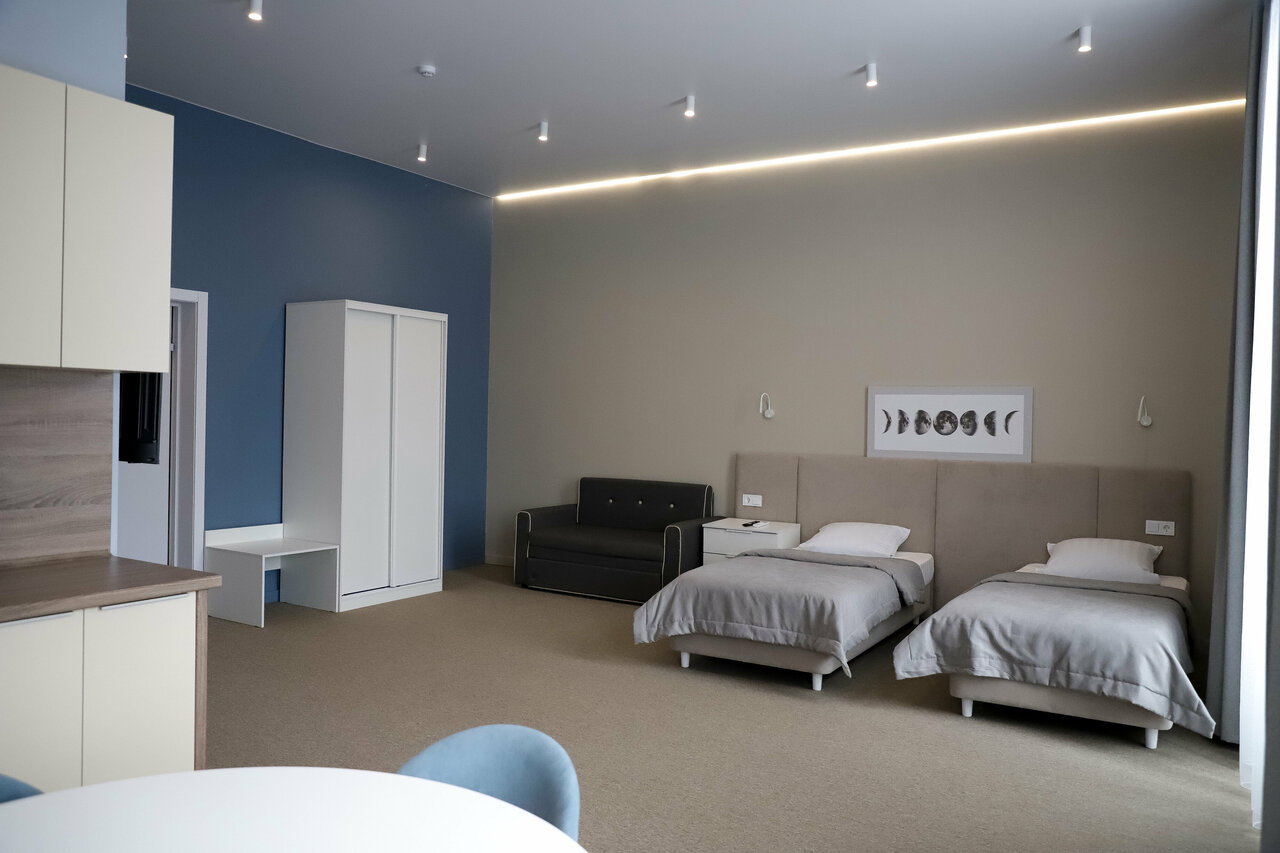 Сняли двухкомнатный номер, всем довольны. 2 удобные двуспальные кровати, отличный аккуратный ремонт, по кондиционеру в комнатах. Рекомендую