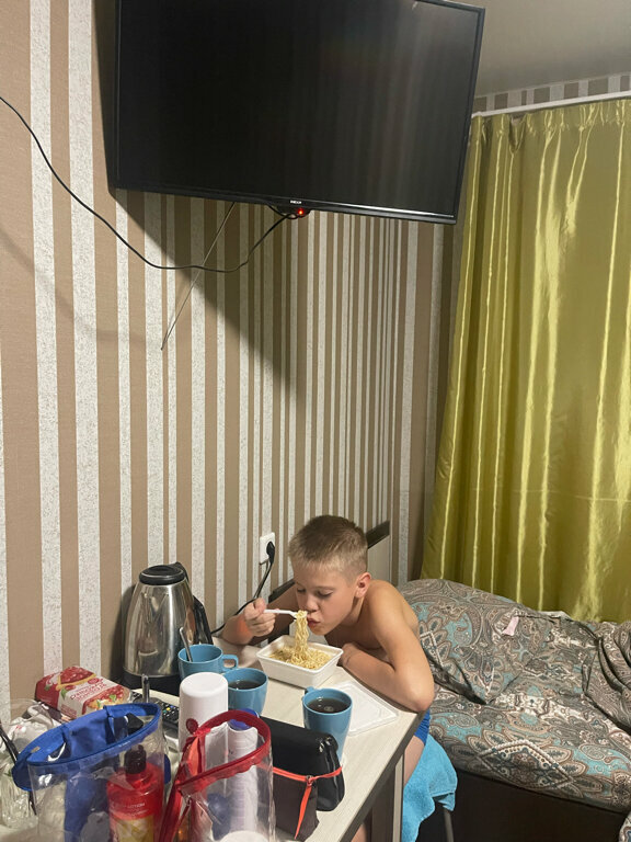 Отличный отель, советую. В комнате есть все для комфортного отдыха: душ, с/у, стол с принадлежностями для чая, вилки, ложки. Так же присутствует меню для заказа отличной домашней еды, как бонус — еда оказалась дешевле ценника. Рядом есть два магазина ‘Пятерочка’ с разным ассортиментом, столовая (нам о ней сказали на 3-й день))). Ну и самое главное — это рядом с ремонтной мастерской для тех, кто сломался в пути.