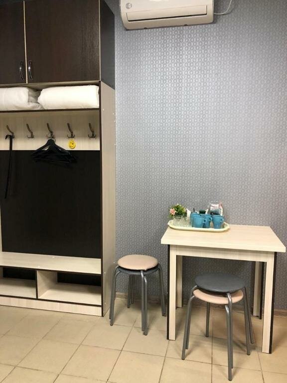 Чистый, аккуратный, все в номере: душ,туалет, фен, кондиционер, телевизор. Блоки по 2 номера. Есть общая кухня на 2номера. Останавливались на 1ночь. Отличный вариант! Рядом круглосуточная пятёрочка.